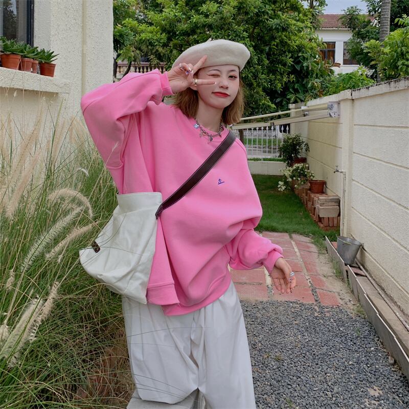 INS 秋新作 超人気 韓国系 シンプル ラウンドネック 長袖 Tシャツ