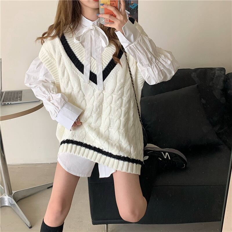 INS 秋新作 超人気 韓国系chic ベスト/ストライプ柄 シャツ/ブラウス