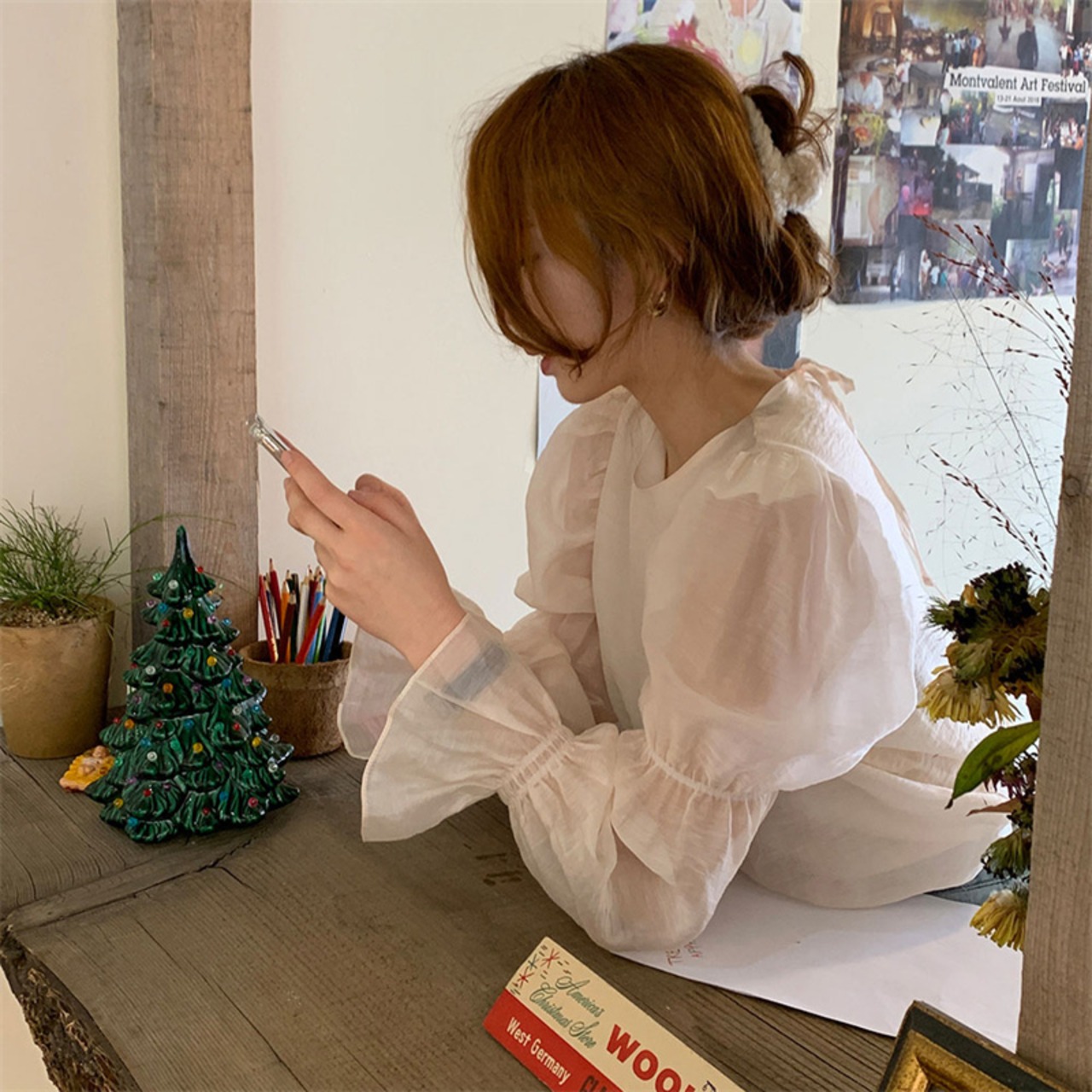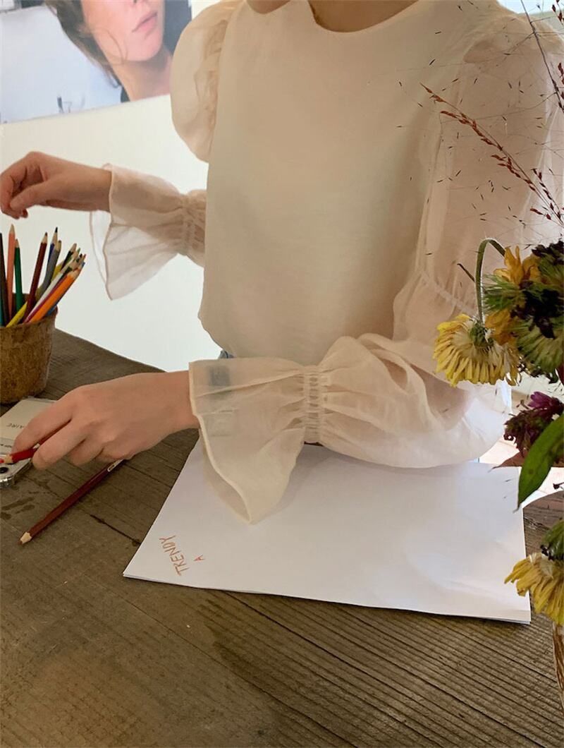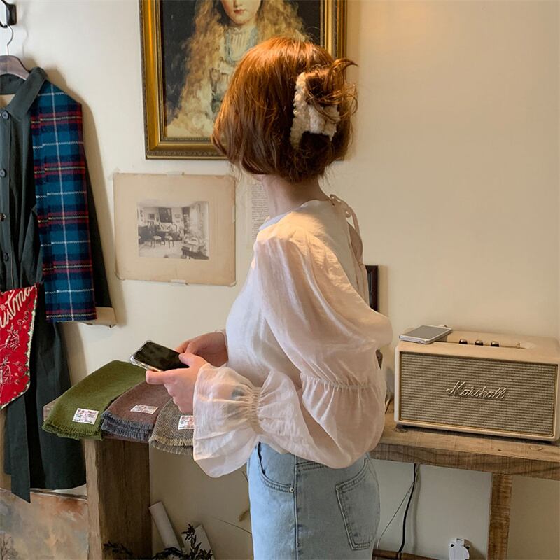 INS 秋新作 ファッション レトロ 気質 オーガンザ ランタンスリーブ シャツ/ブラウス