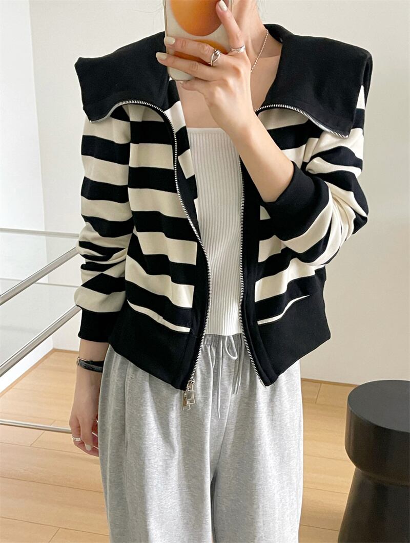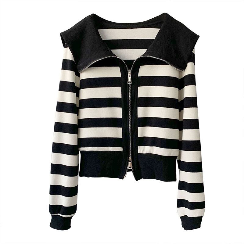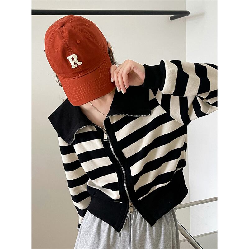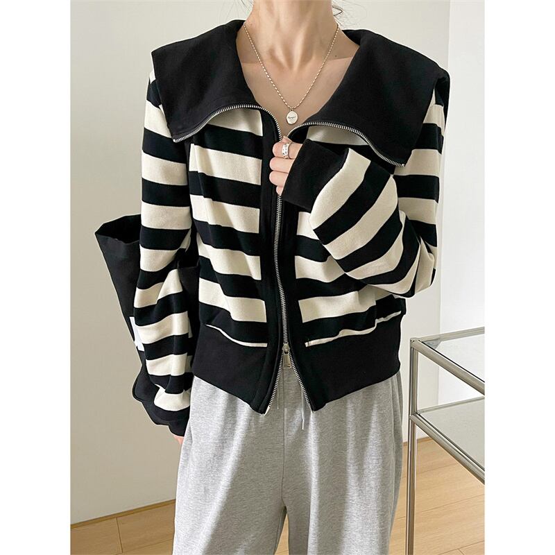 INS 秋新作 超人気 ポロ襟 スタライプ柄 レトロ 長袖ジッパー パーカー
