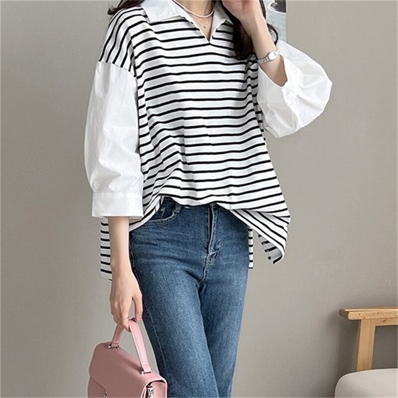 INS 秋新作 超人気 合わせやすい 偽2枚 poloネック スタライプ柄 5分袖シャツ