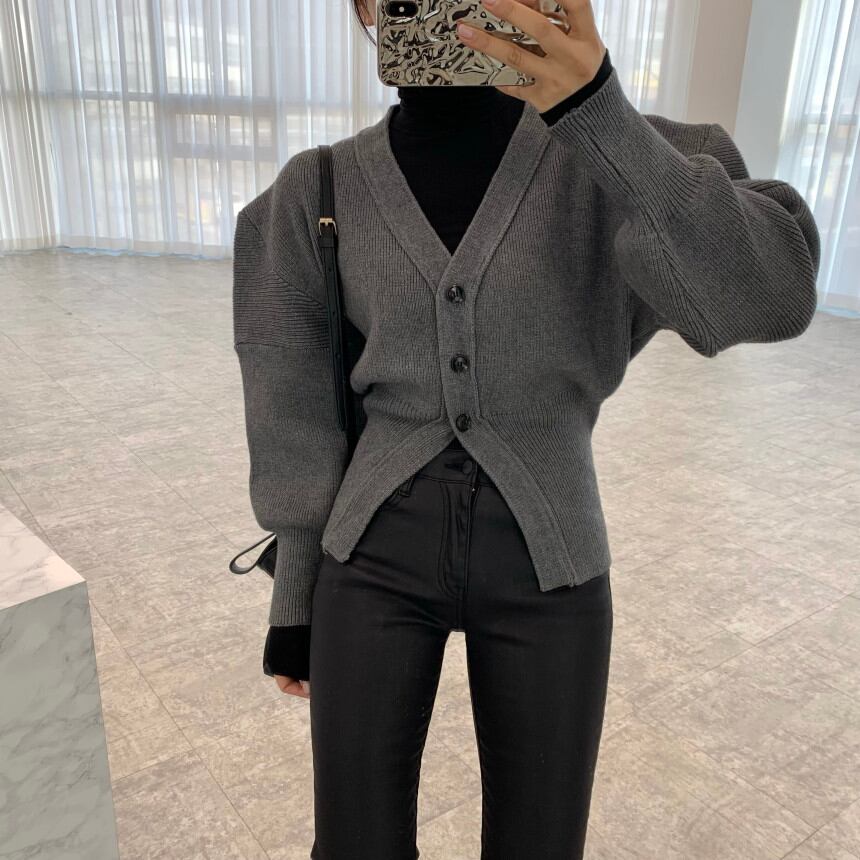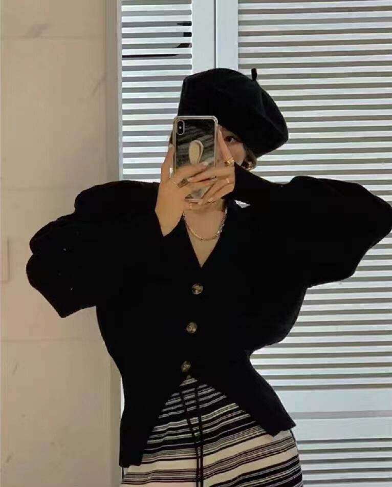 INS 秋新作 超人気 合わせやすい レーシング ニットランタンスリーブ カーディガン
