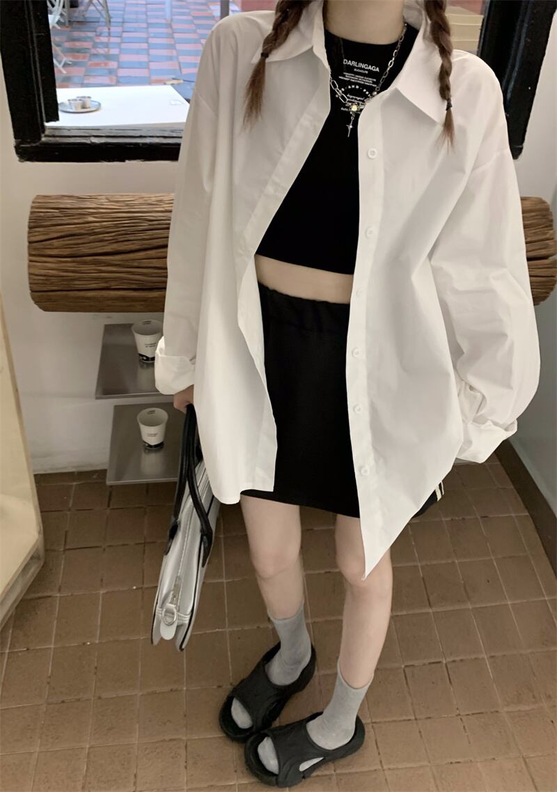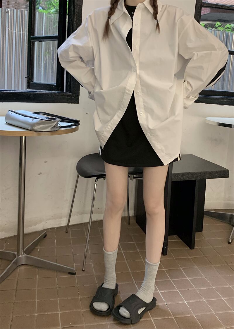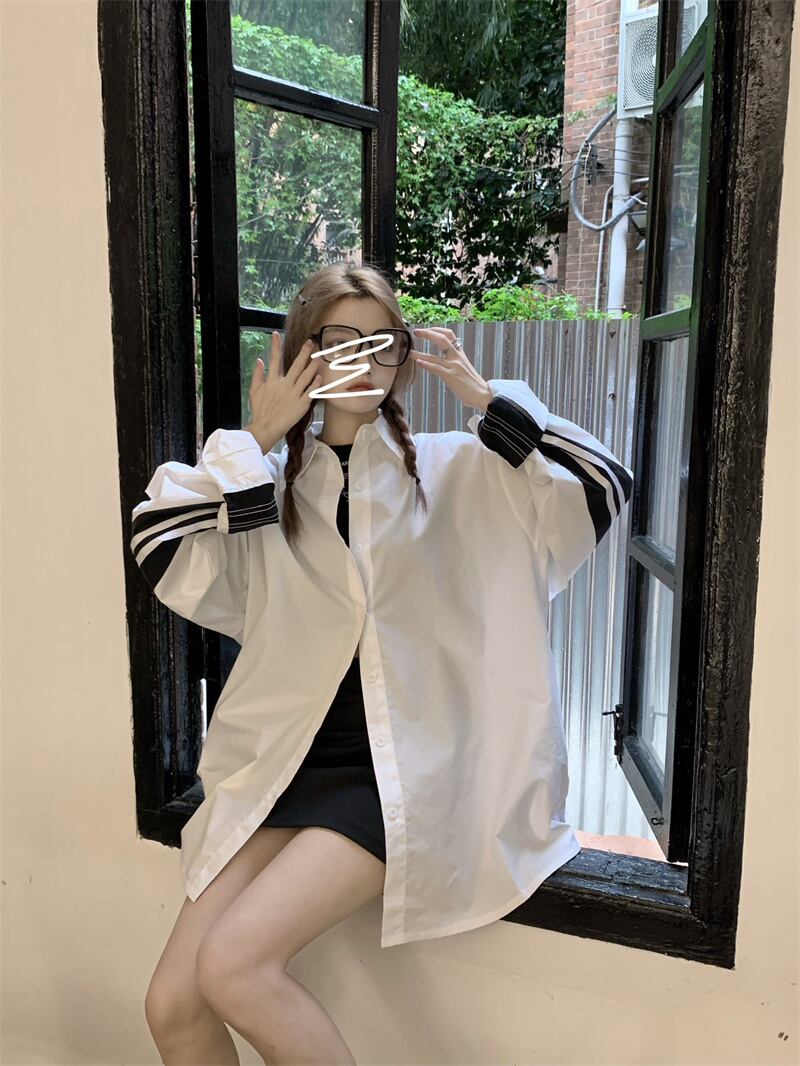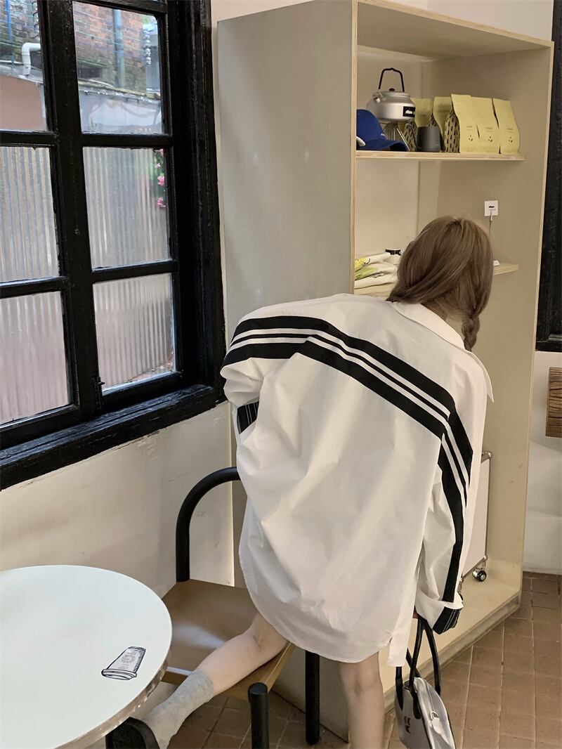 INS 秋新作 カジュアル デザイン ゆったり ストライプ 柄 ロング シャツ