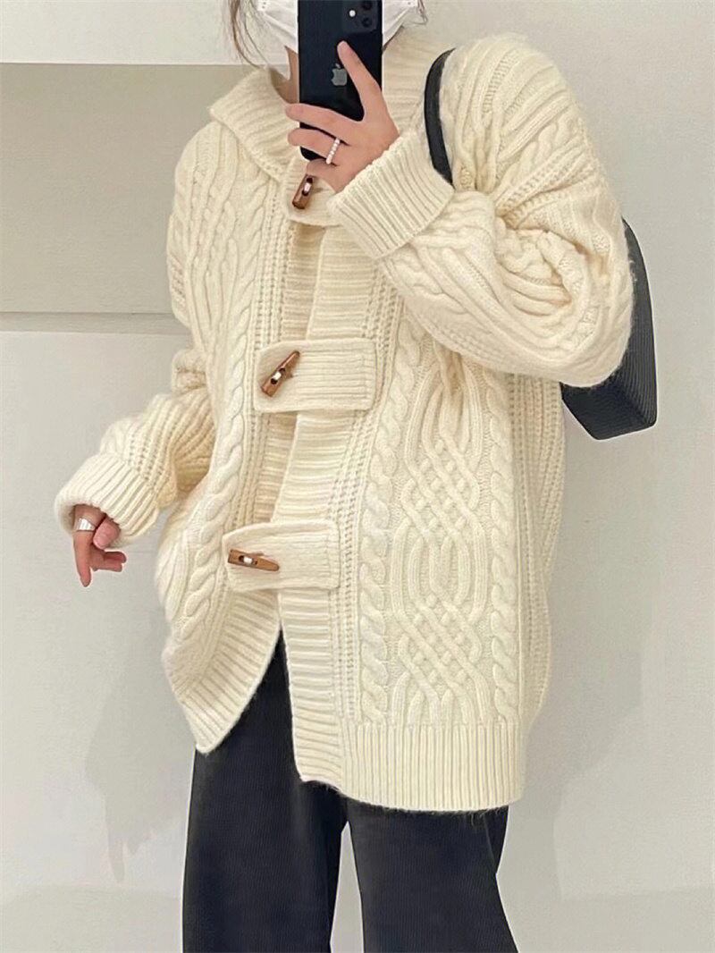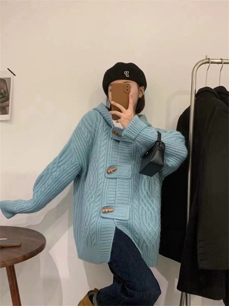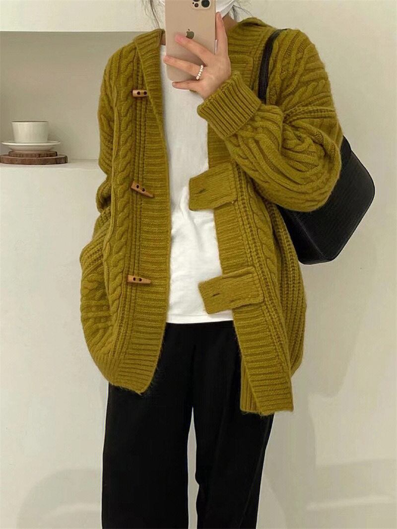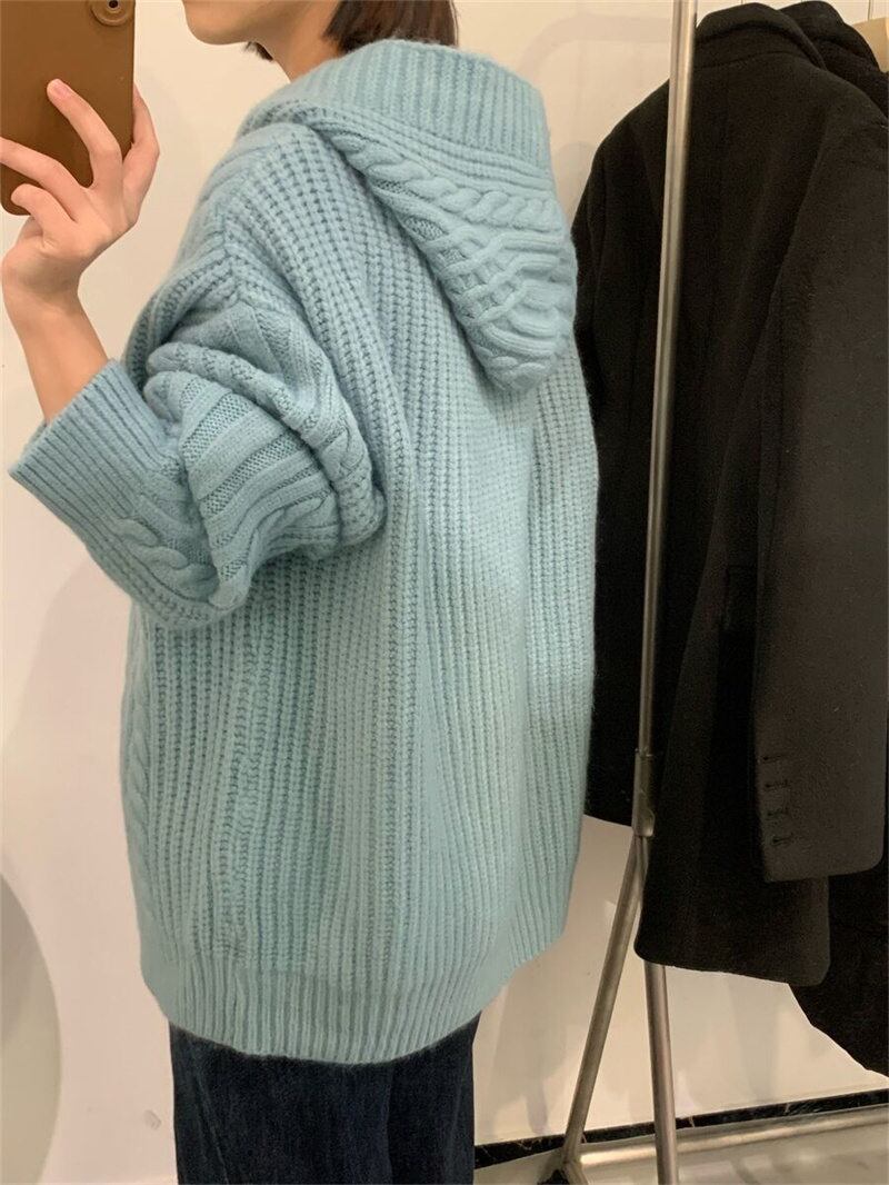 INS 秋新作 超人気ゆったり シンプル 韓国系 優しい印象 フード付きセーター カーディガン