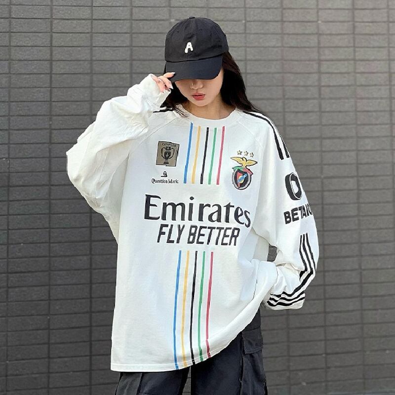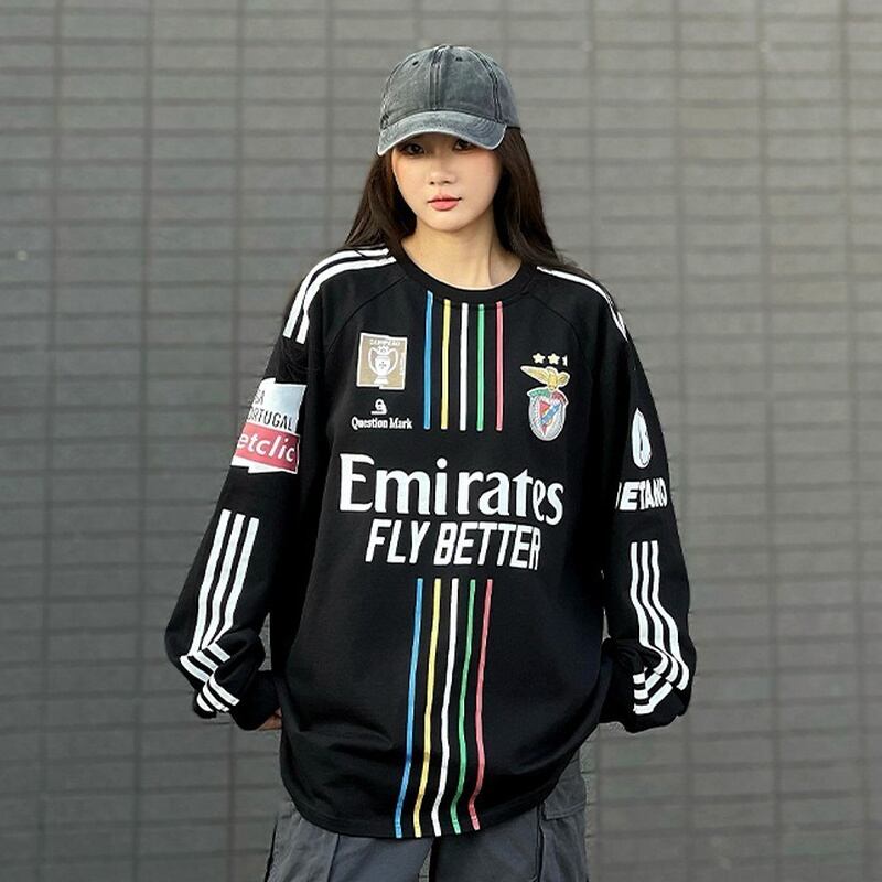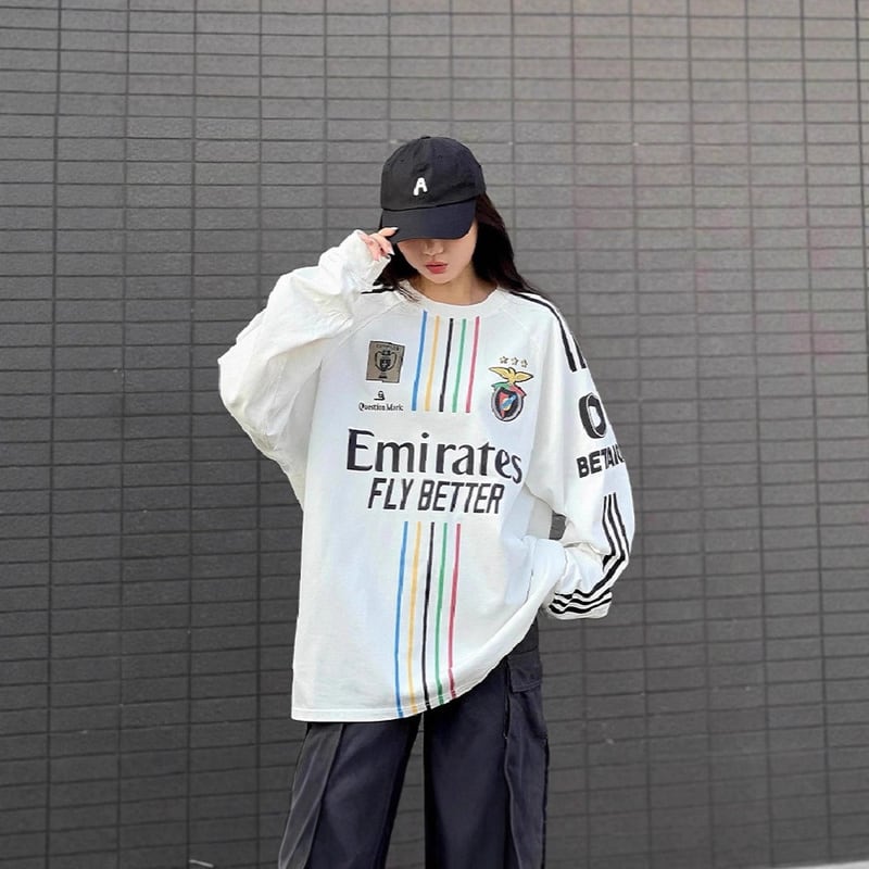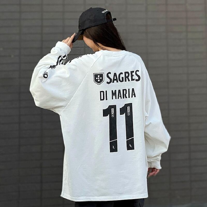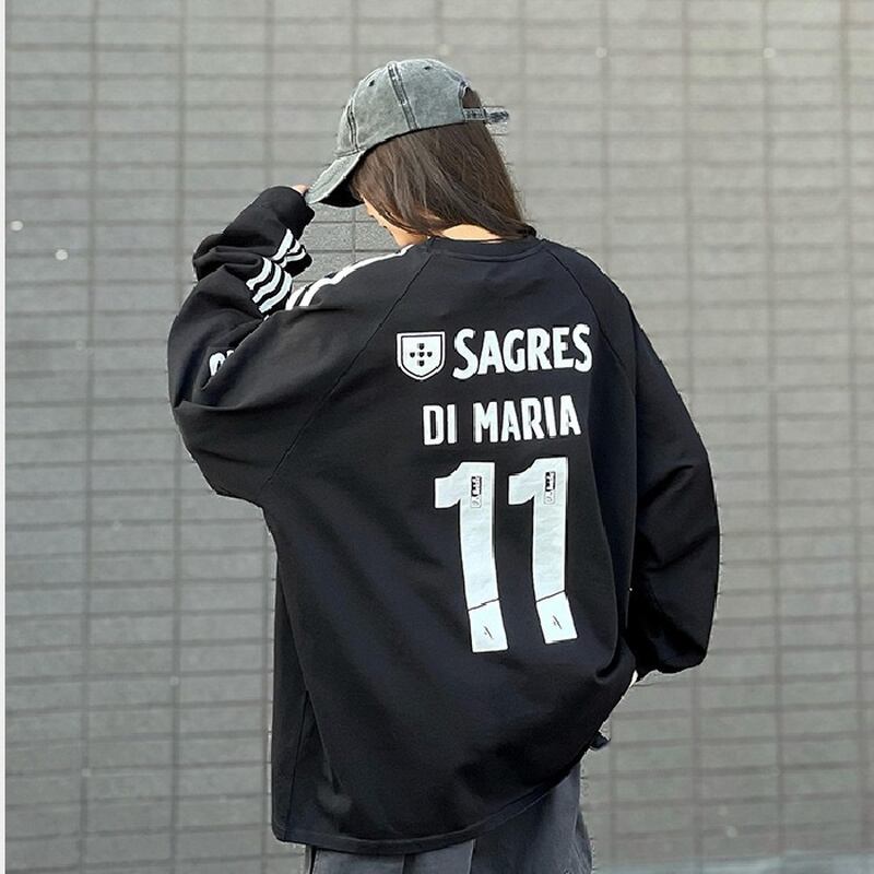 スウェット ゲームシャツ風 ナンバリング ストリート スポーティー ライン入り ルーズ