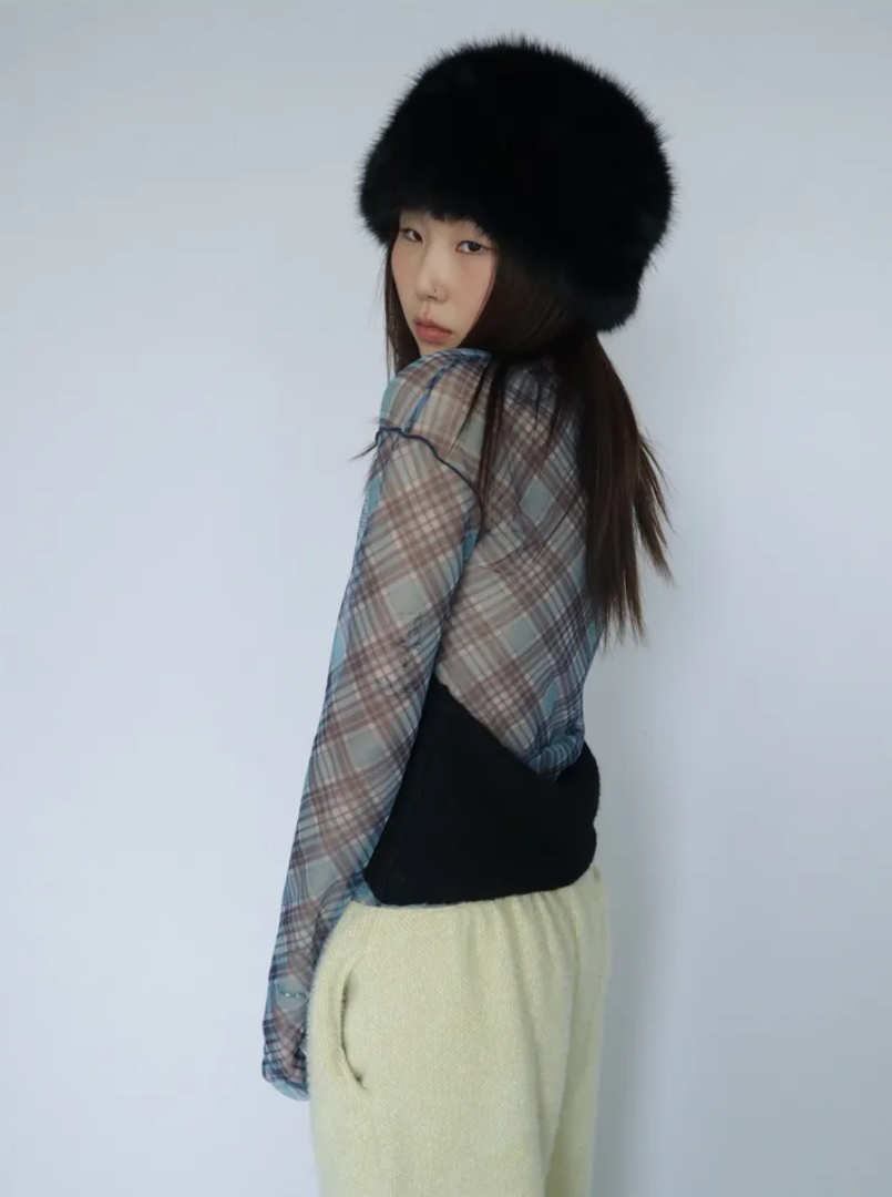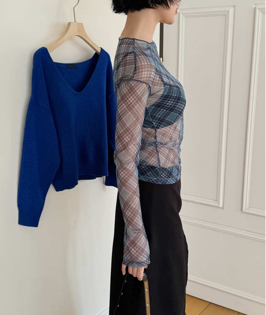 2026年INS 春新作 気質 おしゃれ チェック メッシュ スリム インナー T シャツ トップス