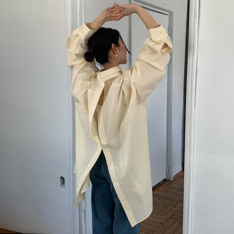 2026年INS 春新作 気質 おしゃれ バックスリット ルーズ ドロップショルダー トップス