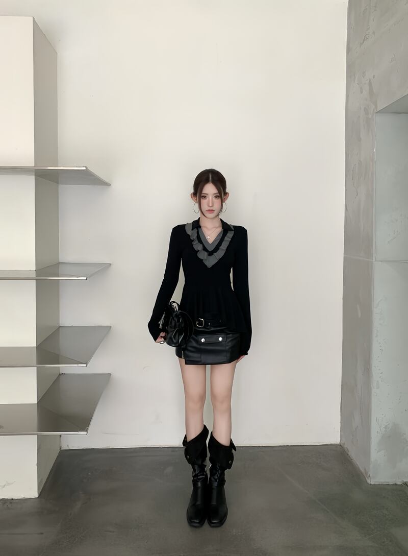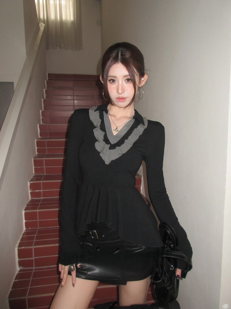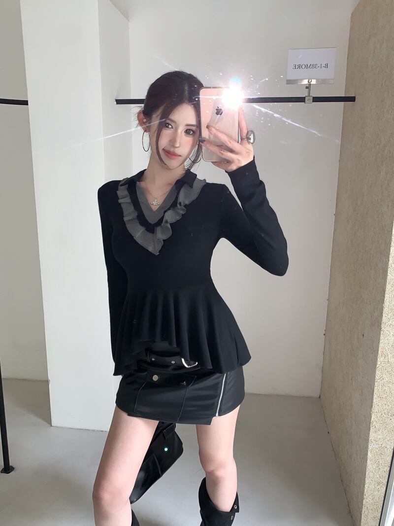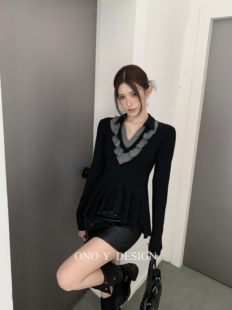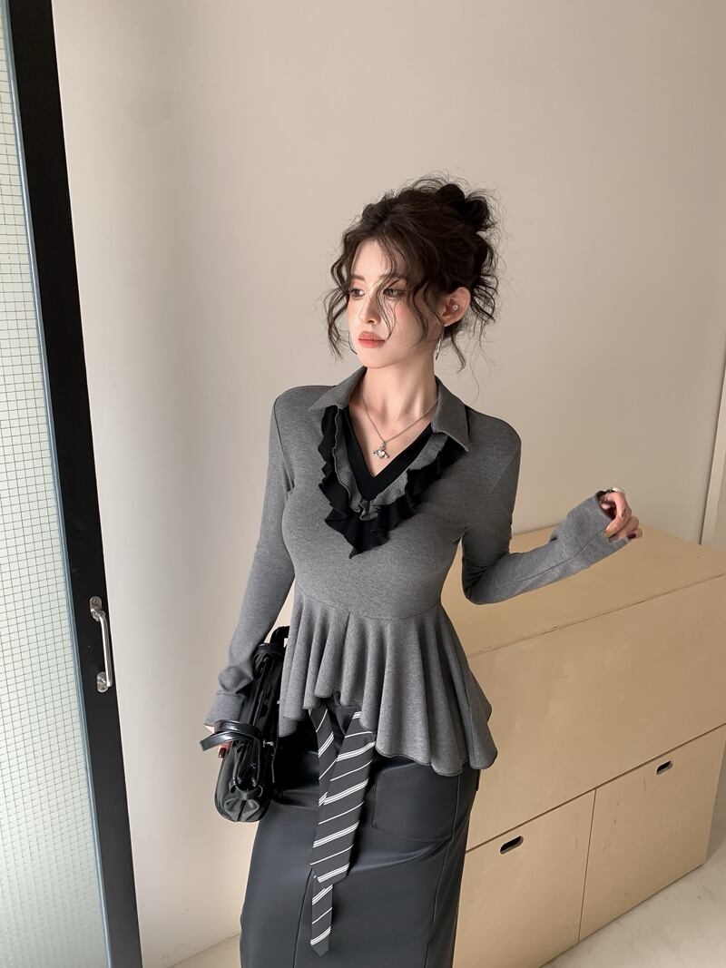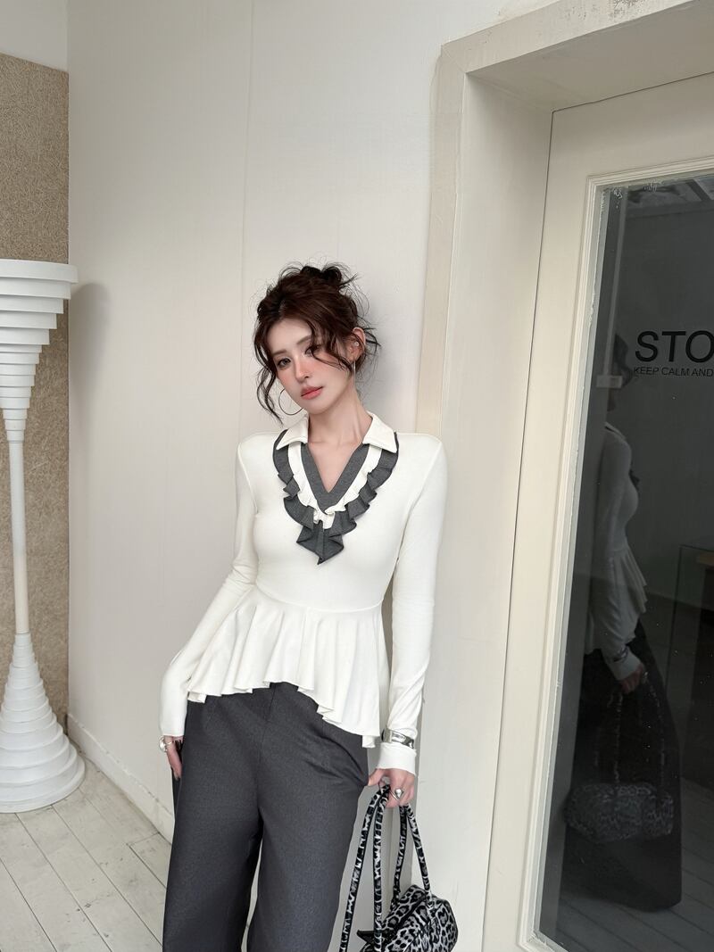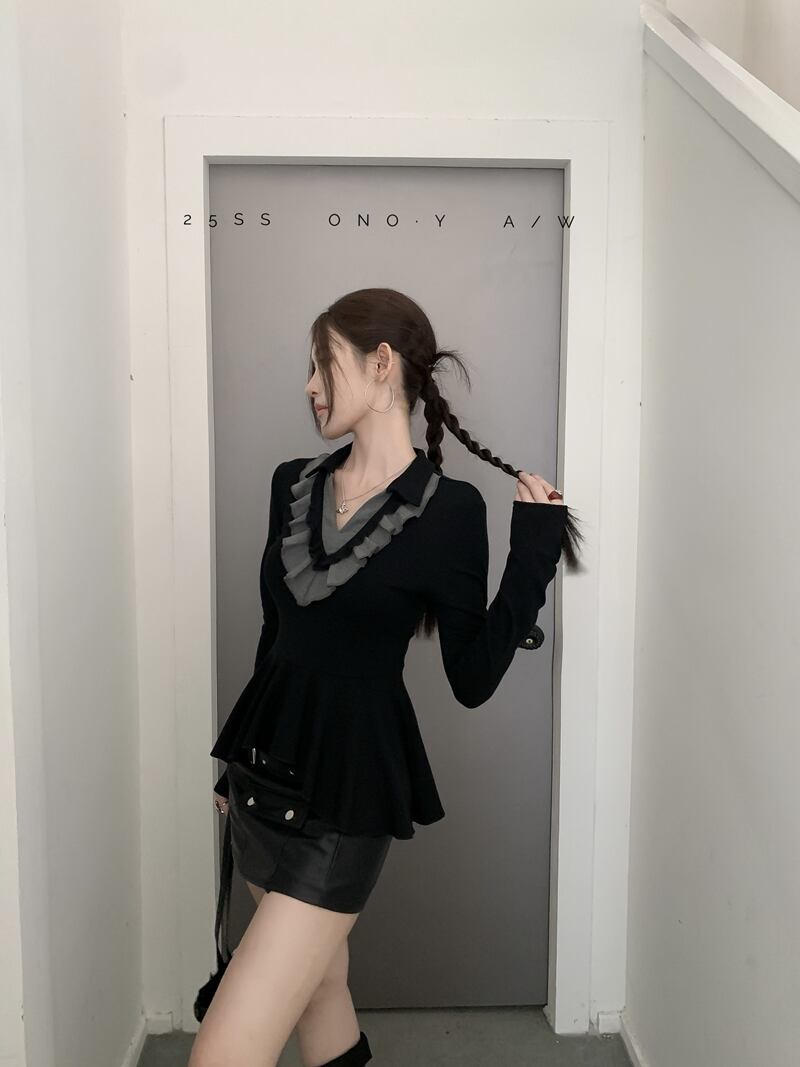 2026年INS 春新作 気質 おしゃれ カラードカラー フリル インナー トップス