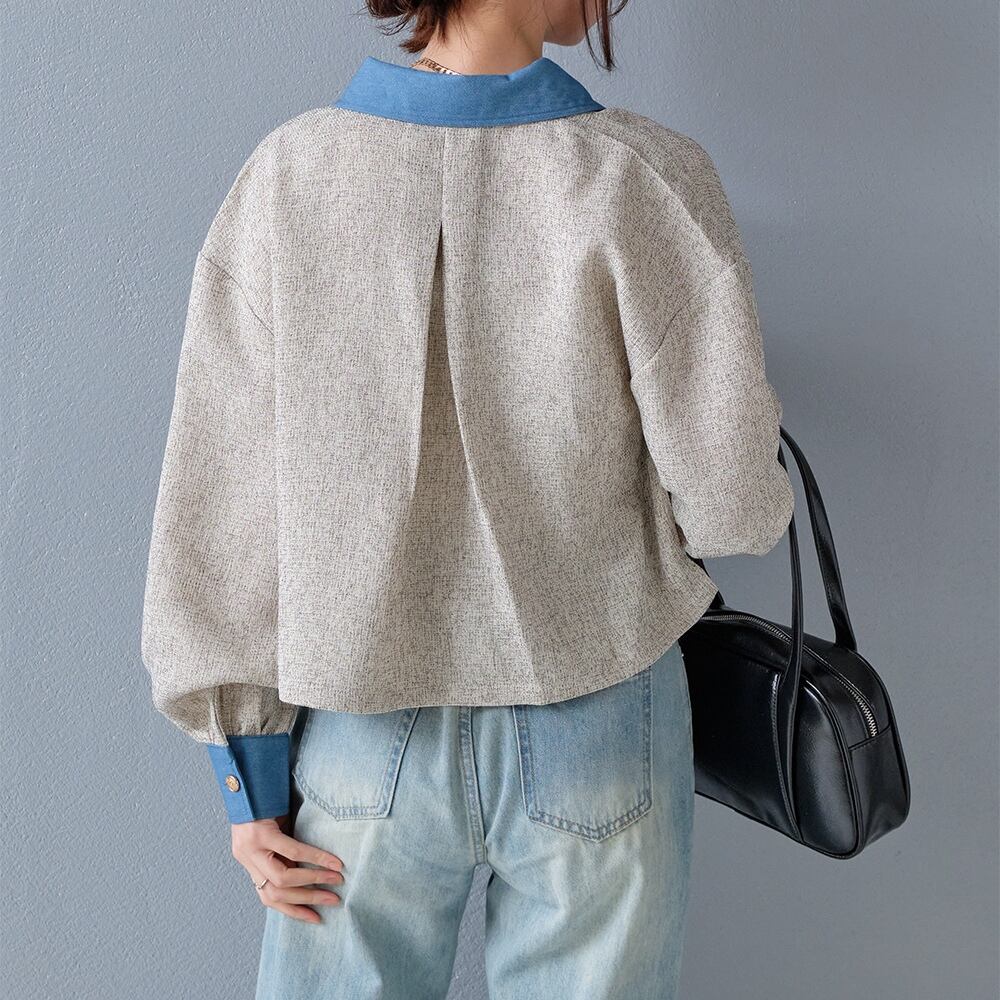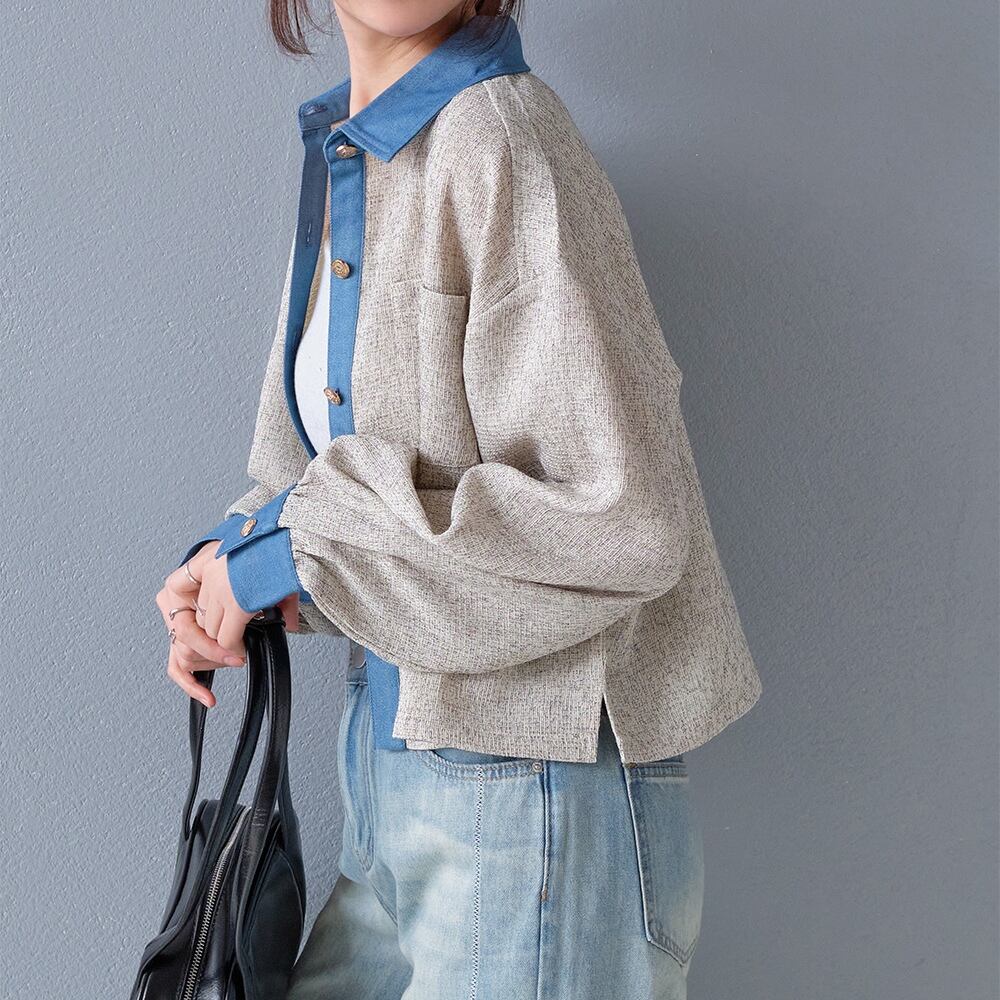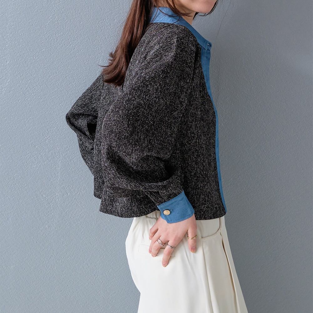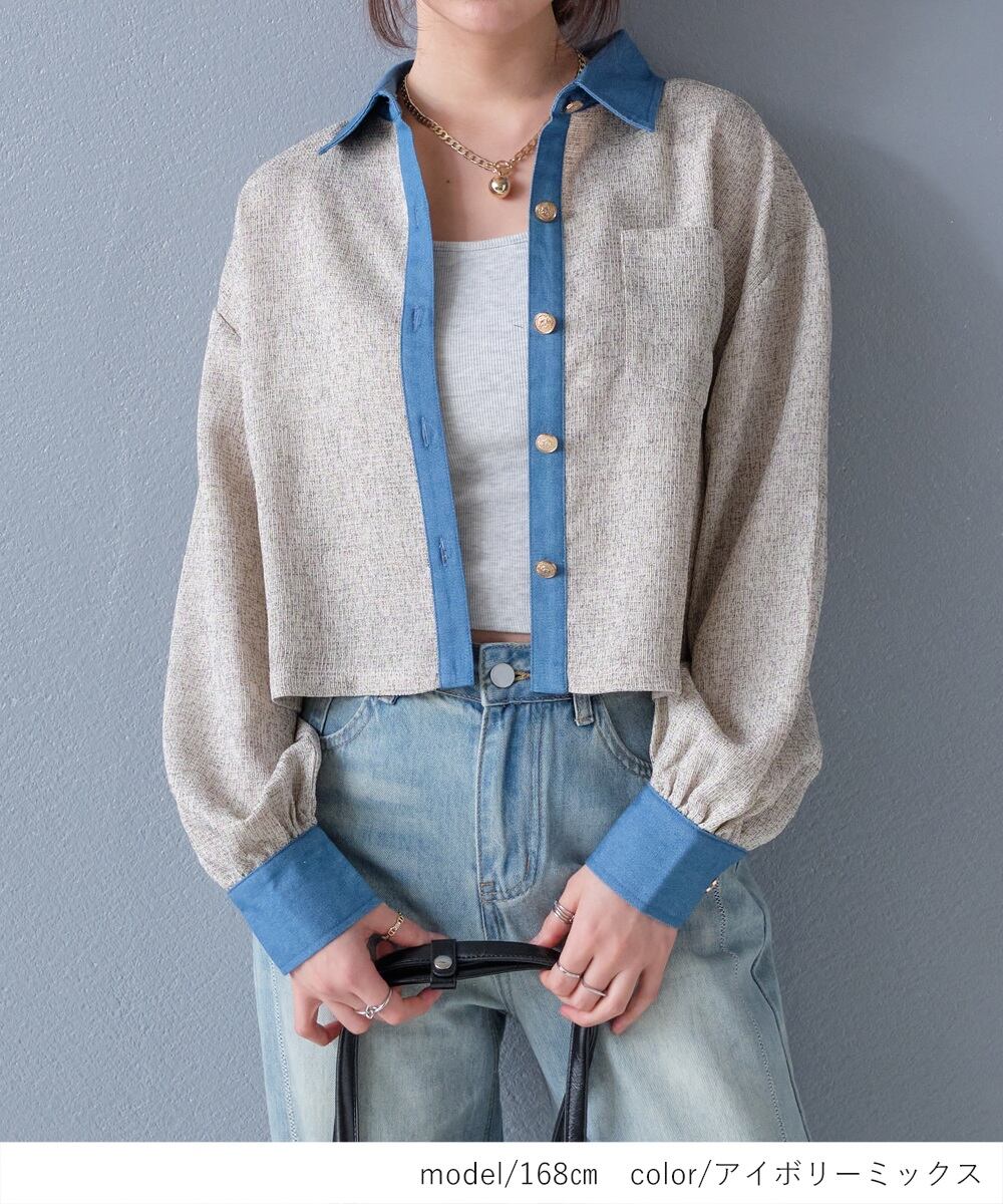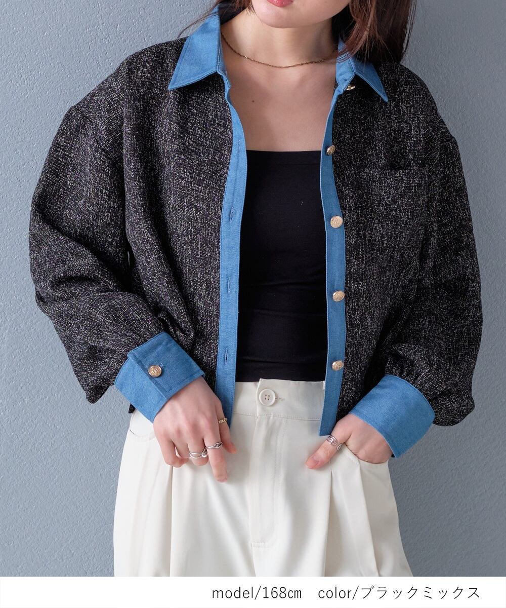 【2026新作商品♪】ツイード×デニムショート丈シャツ