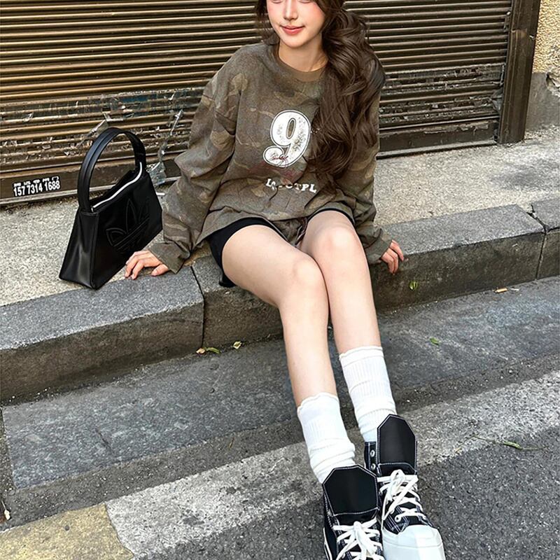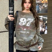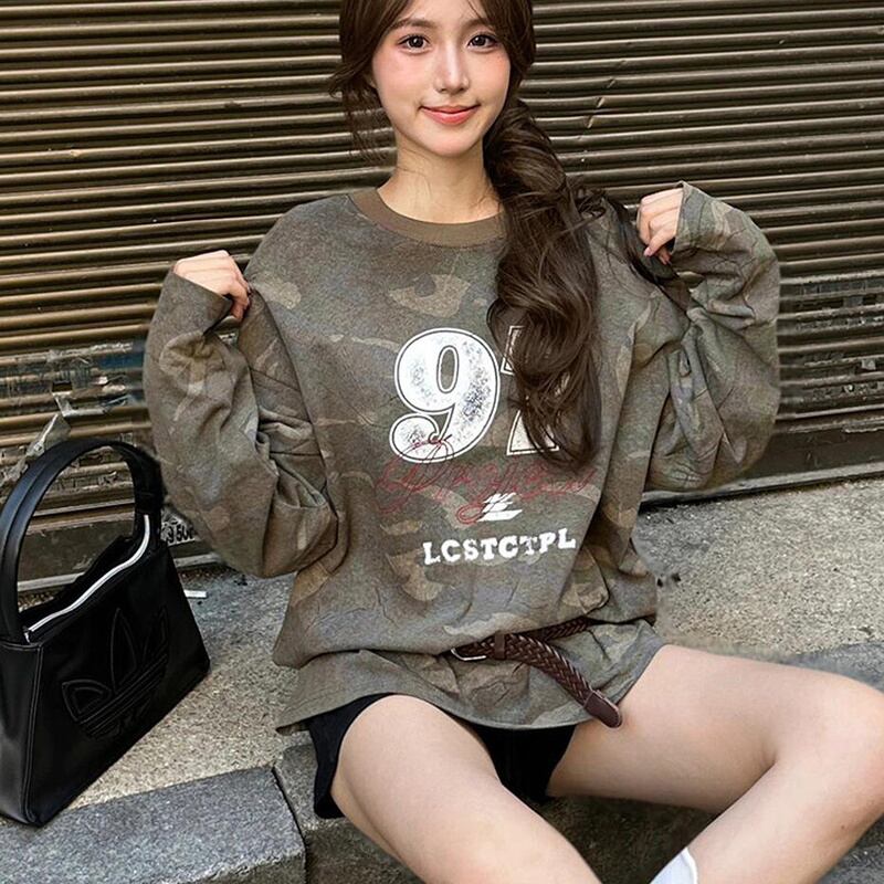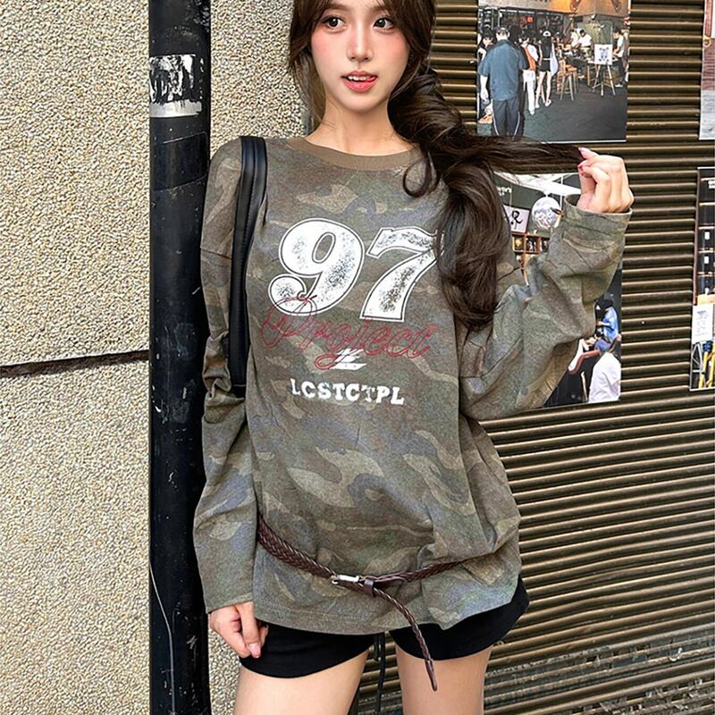 Tシャツ 長袖 迷彩 カモフラ レトロ ゆったり カジュアル ストリート 秋