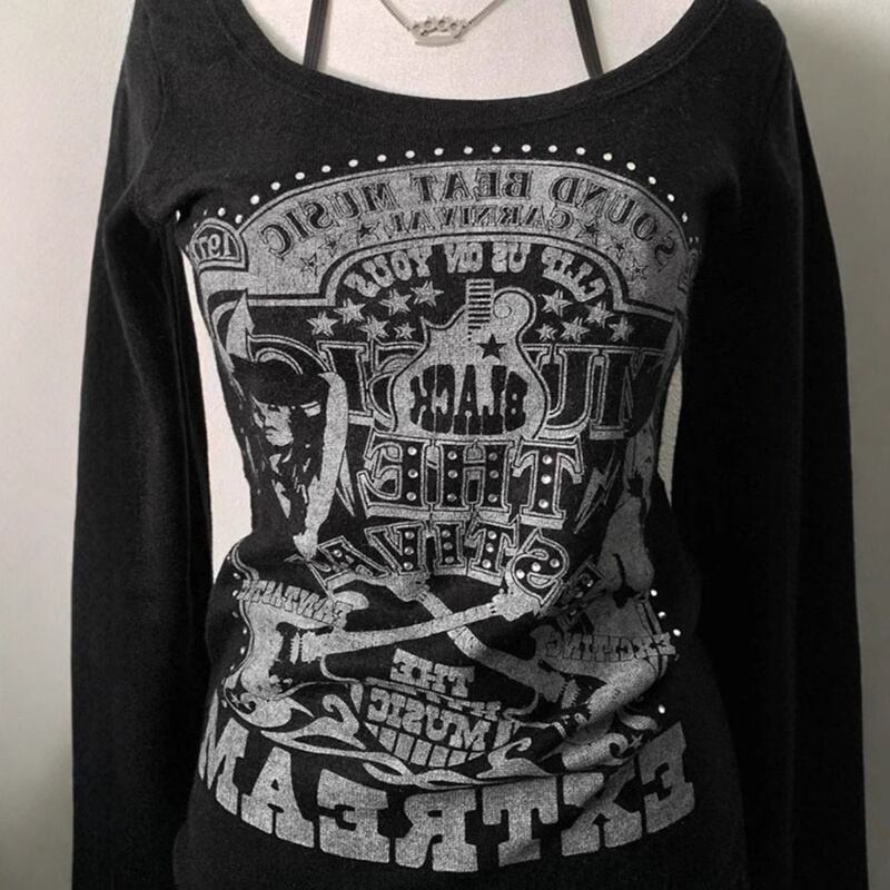 Tシャツ 長袖 黒 キャラクター プリント レトロ ゆったり トップス レディース
