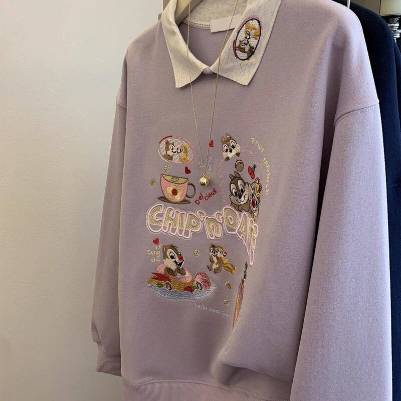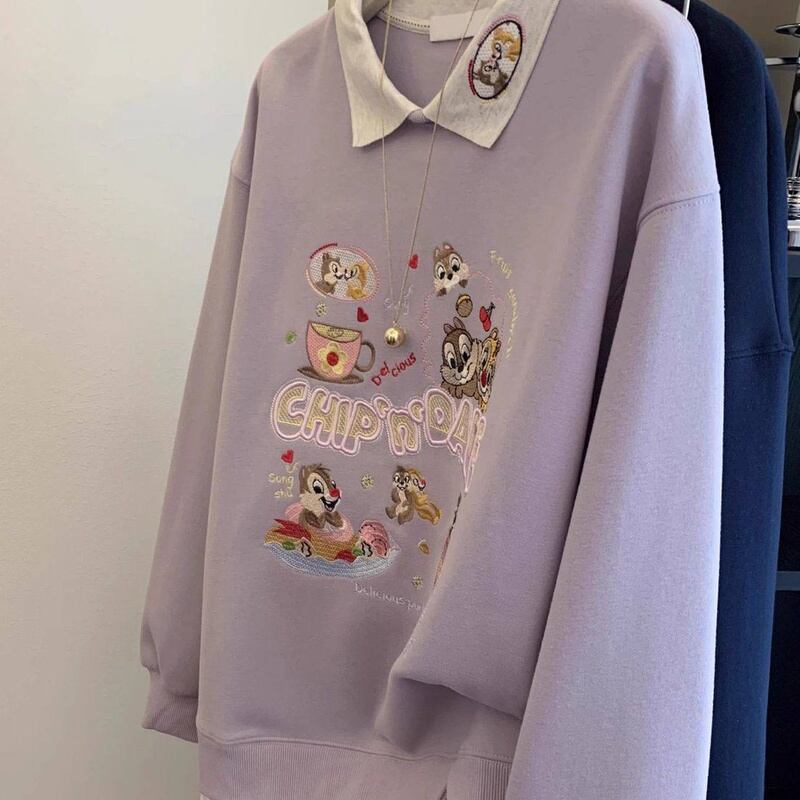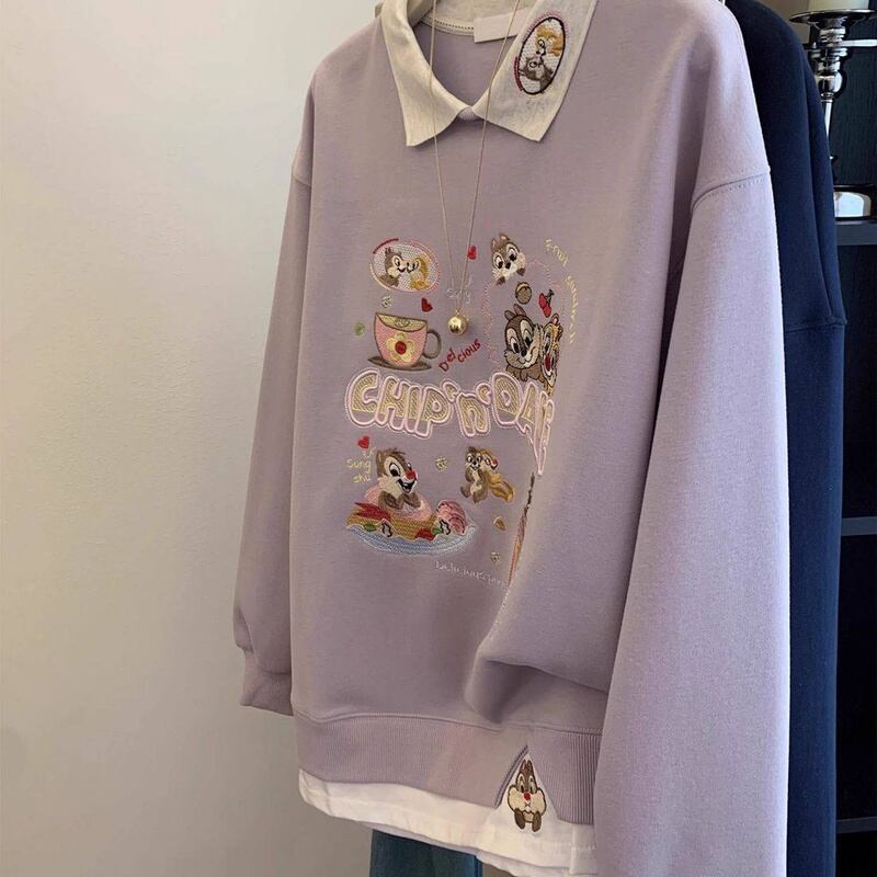 トレーナー ポロ襟 重ね着風 刺繍 レトロ カジュアル 長袖 レディース 秋