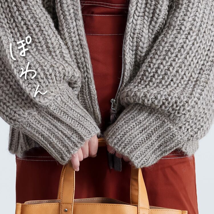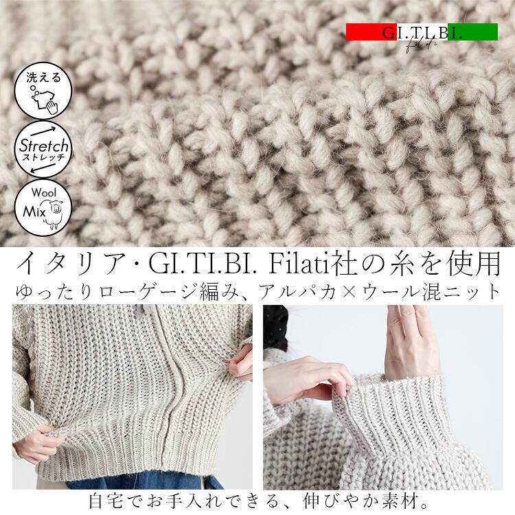 【イタリア糸】畦編みジッパーカーデ ニット カーデ 羽織り アルパカ ウール レディース 上品 可愛い 毛