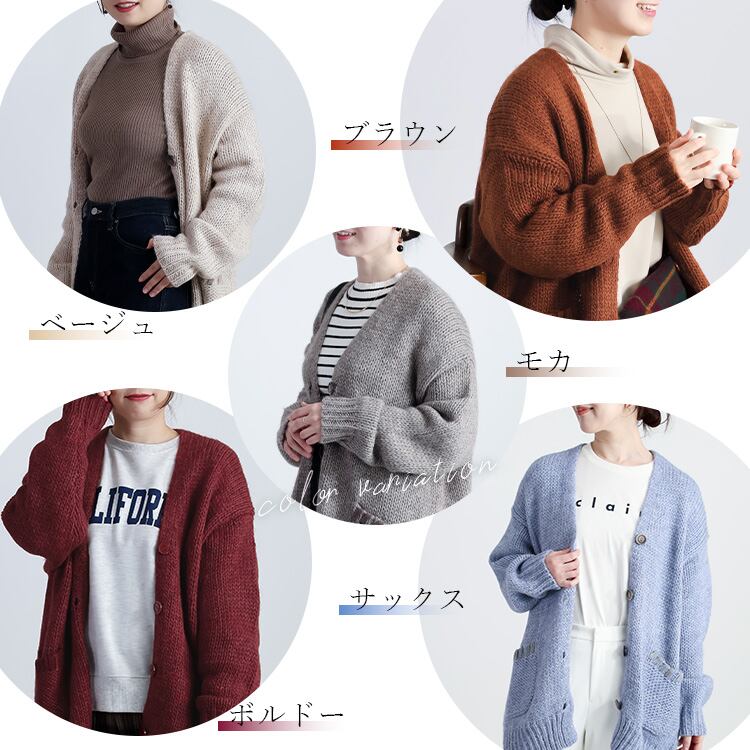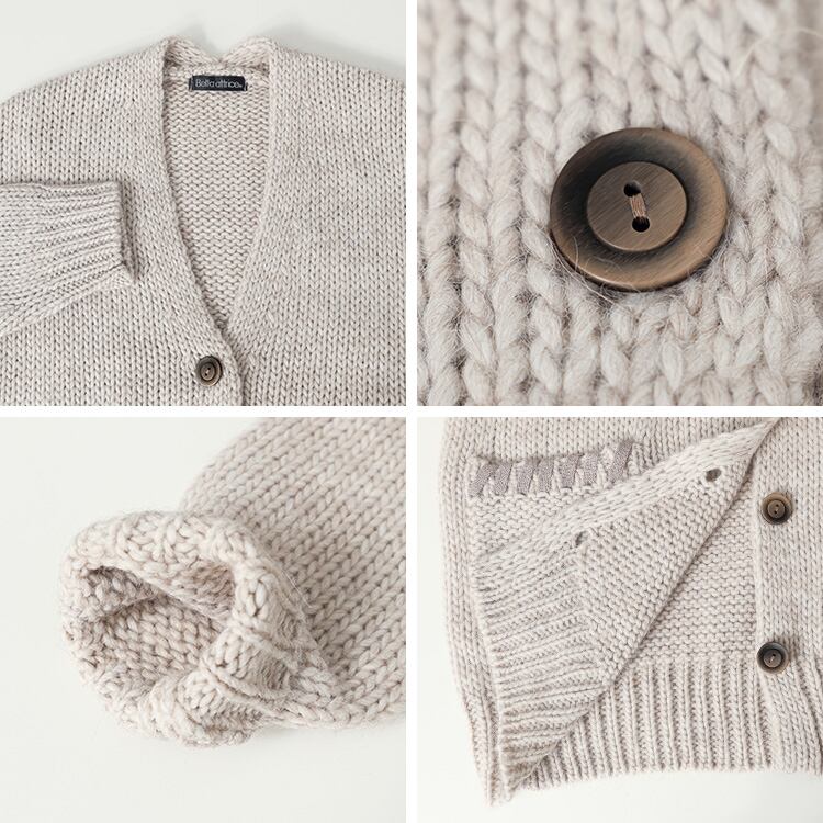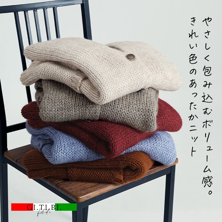 【イタリア糸】畦編みゆったり釦カーデ ニット カーデ 羽織り アルパカ ウール レディース 上品 可愛い 毛