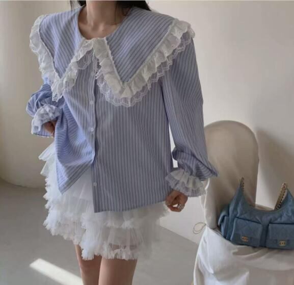 トップス レディース シャツ 長袖 縦縞 カジュアルシャツ