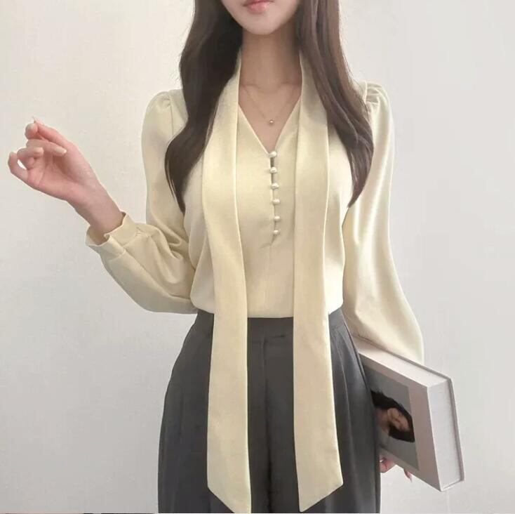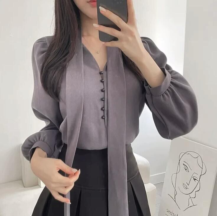 トップス レディース シャツ 長袖 Vネック 韓国風 カジュアルシャツ