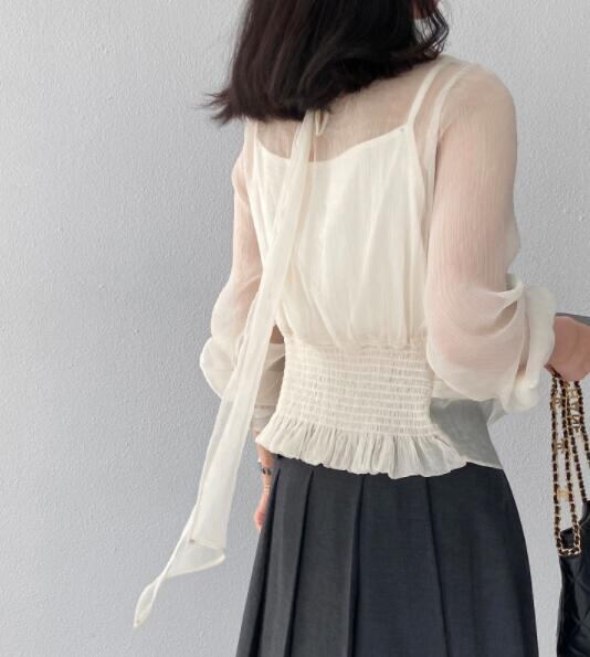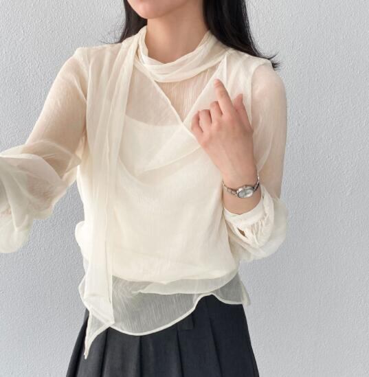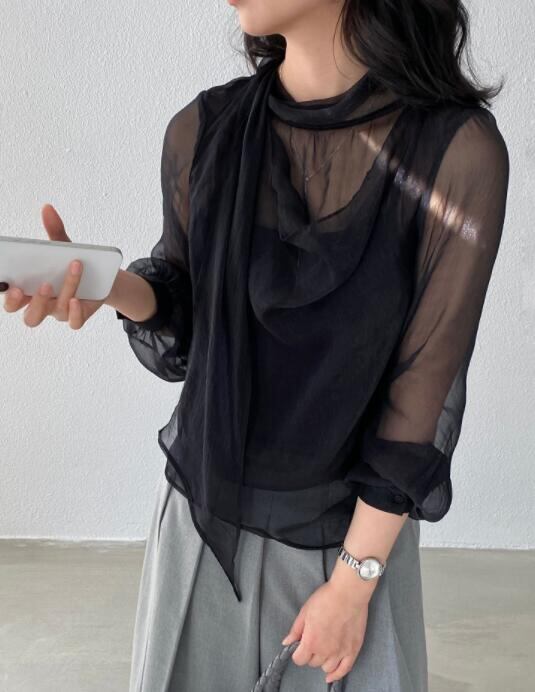 トップス レディース シャツ 長袖 カジュアルシャツ シースルー レイヤード