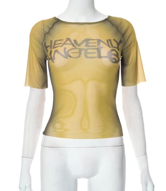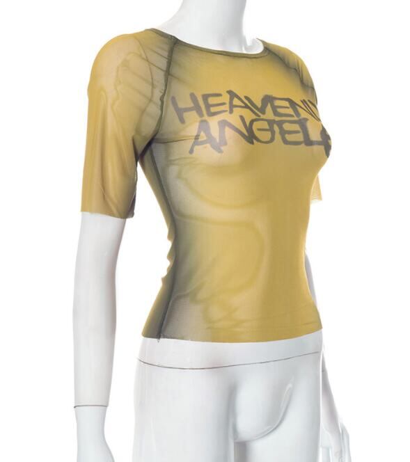 トップス レディース Tシャツ 半袖 スリム シースルー