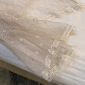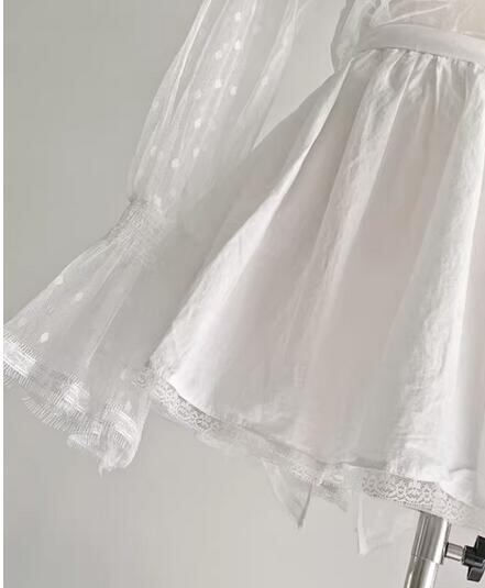 スリム レースアップ フリル トップス 透け感メッシュ ランタンスリーブ