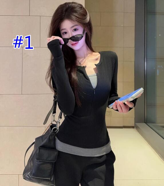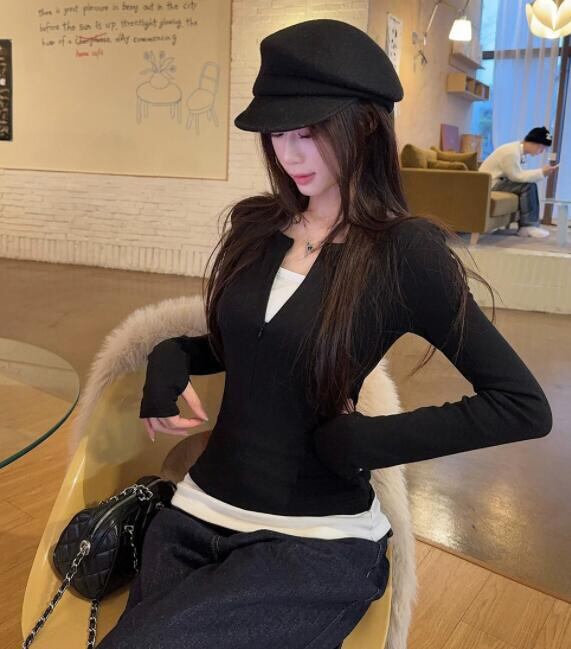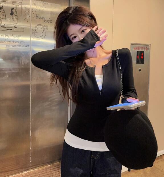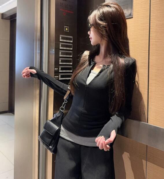 トップス レディース Tシャツ 長袖 レイヤード スリム