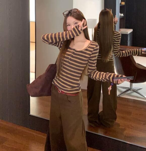 トップス Tシャツ 長袖 レディース ボーダー スリム カットソー