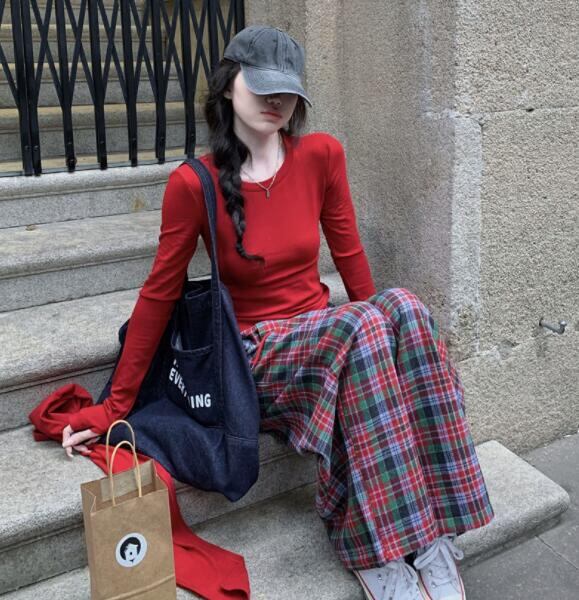 ボトムス ズボン パンツ チェック柄 Tシャツ 長袖