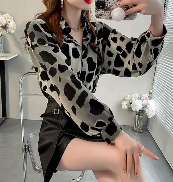 トップス レディース シャツ 長袖 カジュアルシャツ 総柄