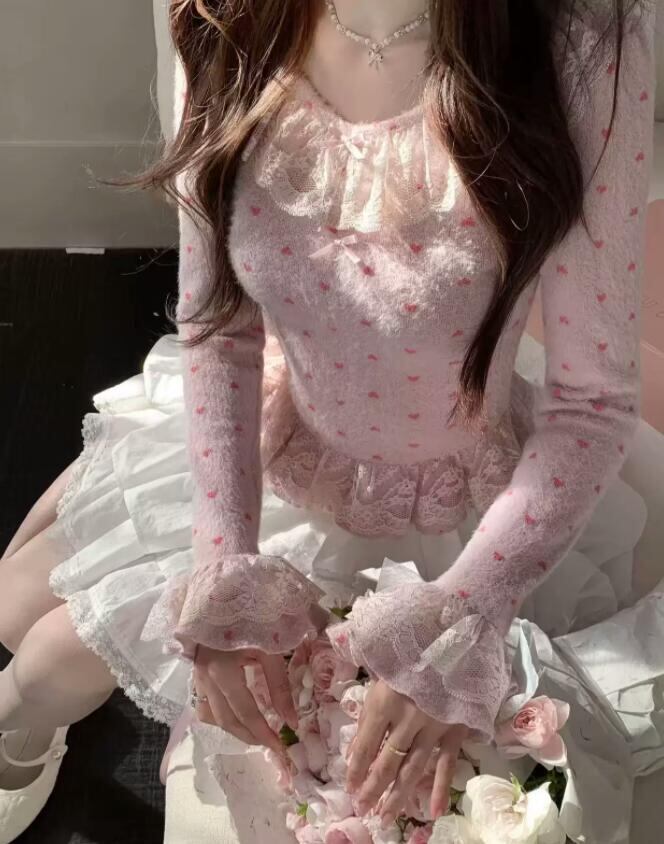 トップス レディース Tシャツ 長袖 レース切替 スリム