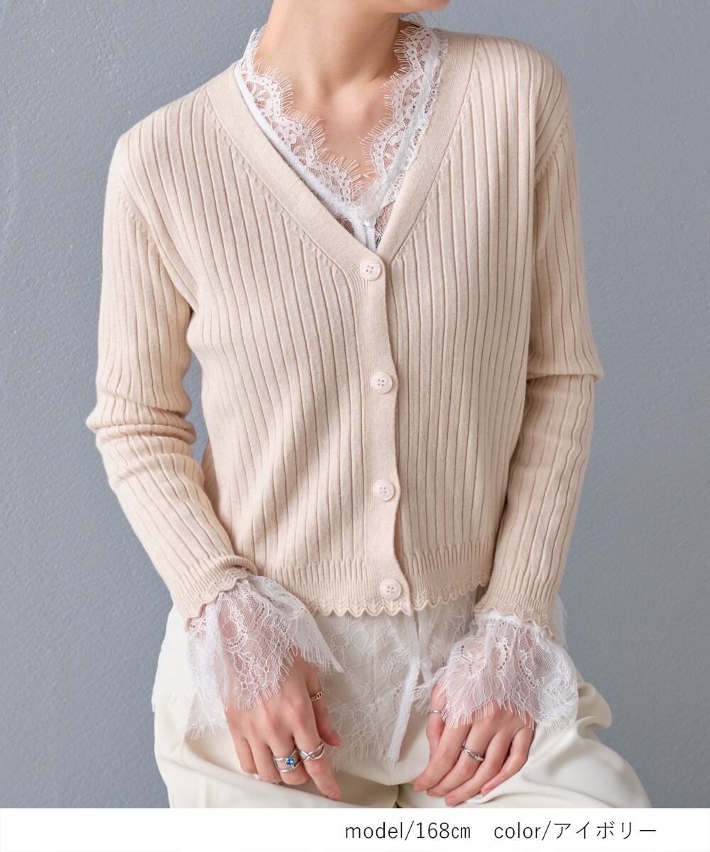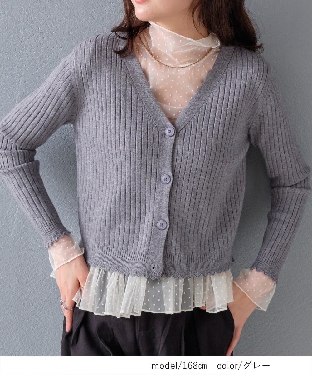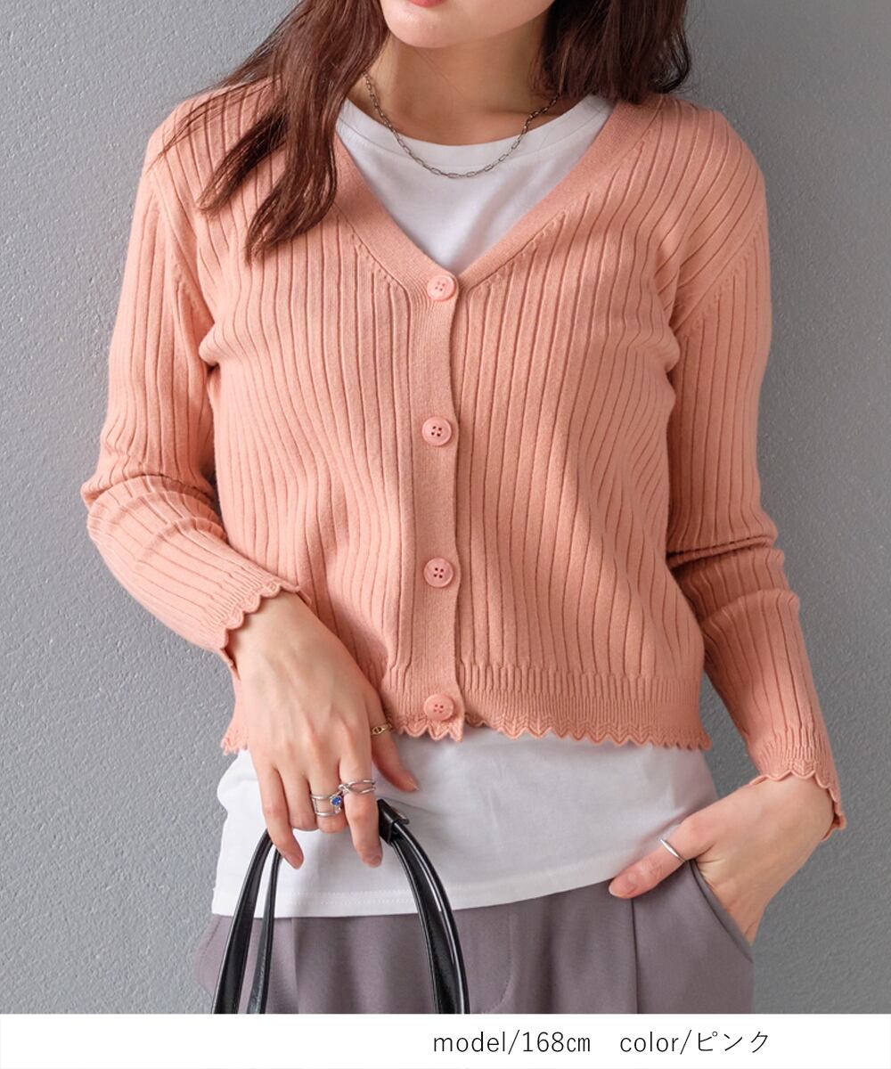 【2026新作商品♪】スカラップデザインリブニットカーディガン