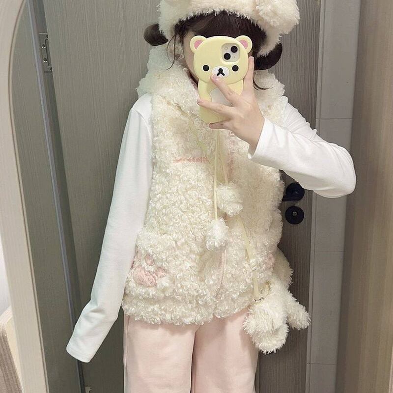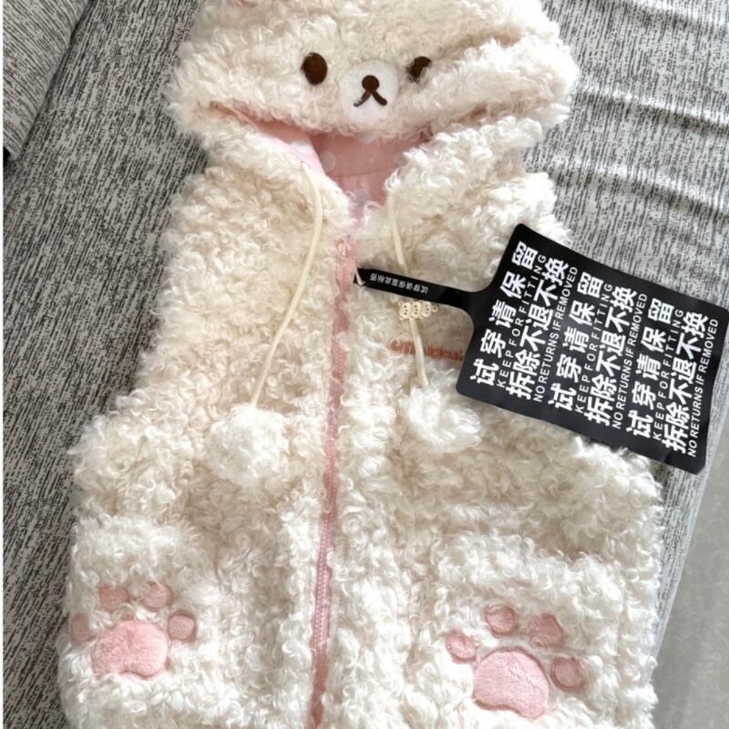 ベスト レディース クマ柄 ボア ゆったり 可愛い 部屋着 レイヤード 秋 冬