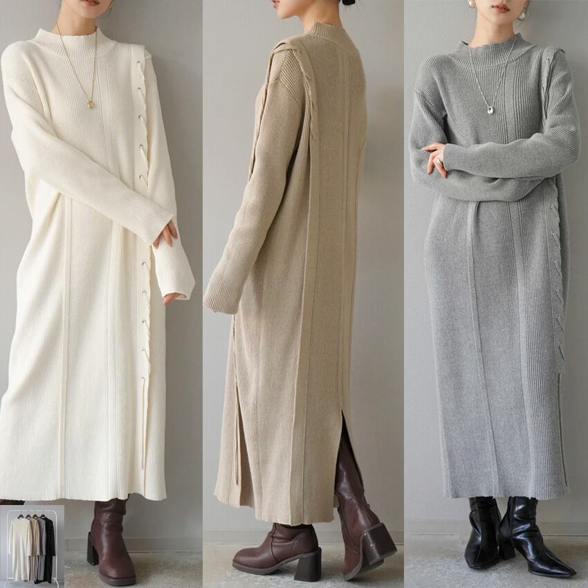 2026年INS 春新作 韓国風 気質 chic 韓国ファッション ニット ワンピース