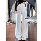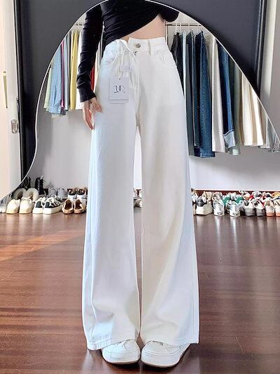 韓国風 ホワイト ワイドレッグ デニム レディース 春 夏 新作 着回し 低身長 ゆったり カジュアル パンツ