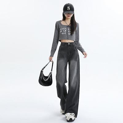 デニムかっこいいスラックスパンツ25の新作アメリカン ハイウエスト デニムパンツ おしゃれ パンツ レディース ワイドレッグ 見えやせ ハイウエストでゆったり 垂れ感