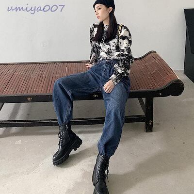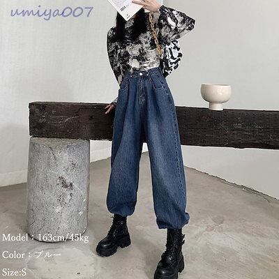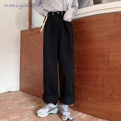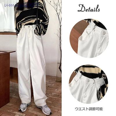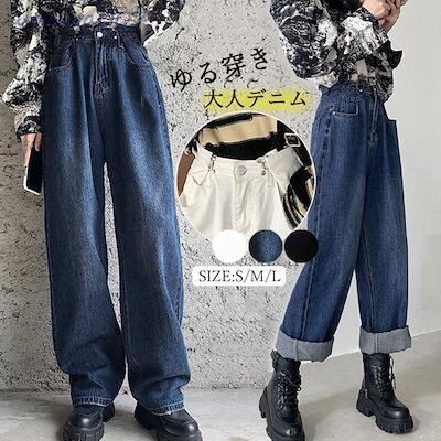 超?折扣-デニムパンツ レディース ワイドパンツ ハイウエスト ボトムス 着やせ ジーンズ ロングパンツ ウエスト調節可能 ゆったり