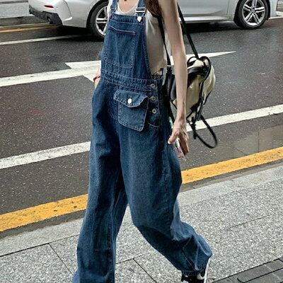 サロペット レディース サロペット ワイドパンツ オールインワン ゆったり ジーパン オーバーオール 調節可能