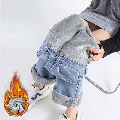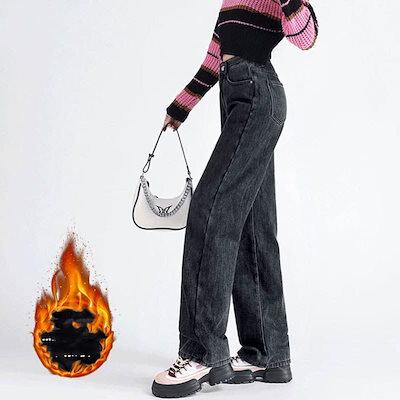 裏シャギー デニムパンツ ジーパン 防寒ズボン 厚手 レディース 裏起毛 ジーンズ ワイドパンツ ゆったり ワイド ストレー