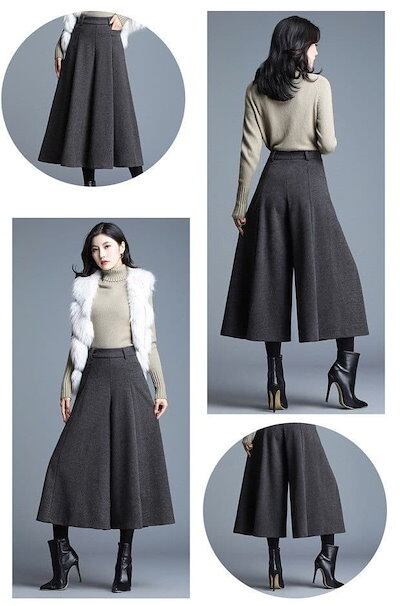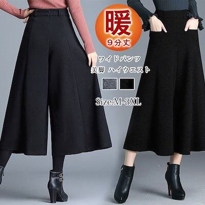 [出荷が早い]ワイドパンツ スカーチョ レディース ガウチョ ウール調 ゆったり パンツ 9分丈 フォーマル ガウチョパンツ 大きい値引きして売る