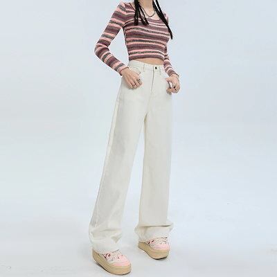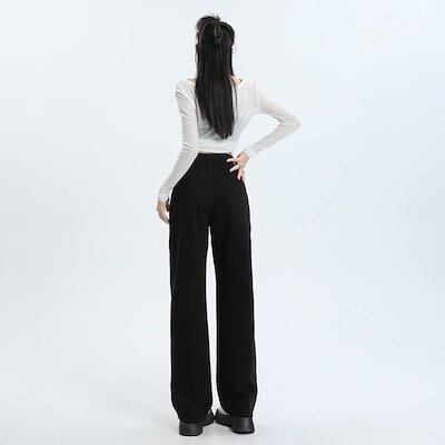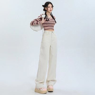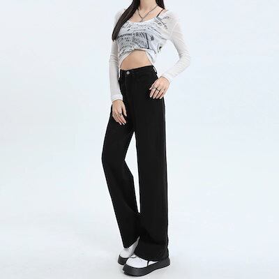 デニムかっこいいスラックスパンツ25 デニムパンツ おしゃれ ハイウエストゆったり見えやせ パンツ レディース 垂れ感ワイドパンツ