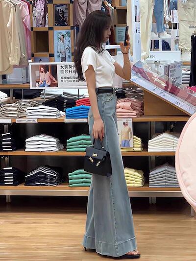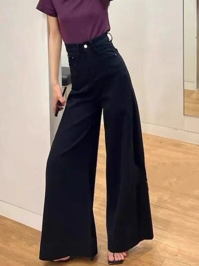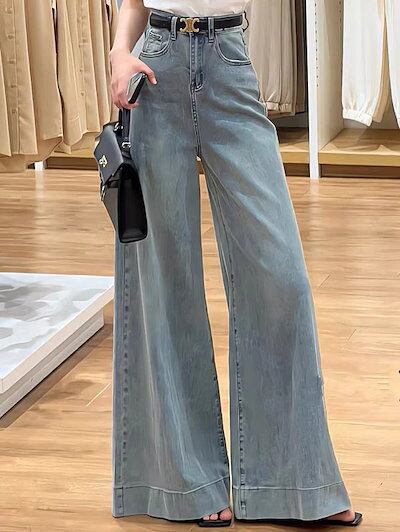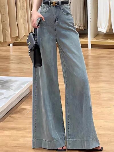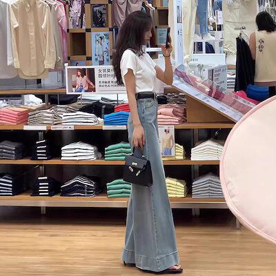 ハイウエスト ワイドレッグ デニム レディース 夏 秋 新作 韓国風 ゆったり 着回し 痩せ見え ドレープ ロングパンツ