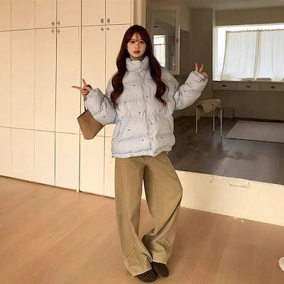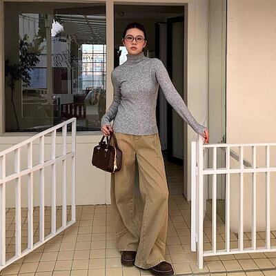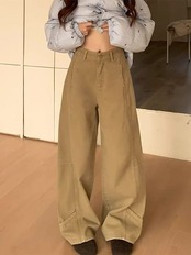 ビッグサイズ レトロ カーキ ?接 デニム レディース 春秋 ゆったり デザイン感 ストレート ワイドレッグ ドレープ パンツ