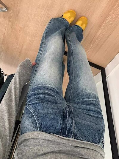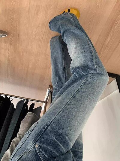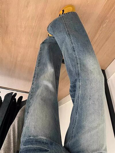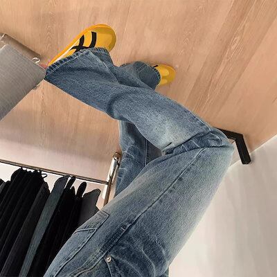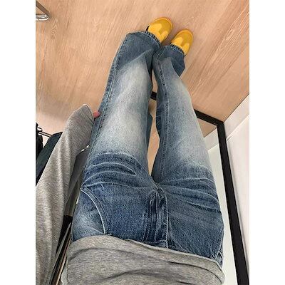 【以内出荷】アメリカン レトロ ストレート デニム レディース 春秋 新作 ハイウエスト ビッグサイズ ゆったり 痩せ見え ルーズ ミクロ フレアパンツ