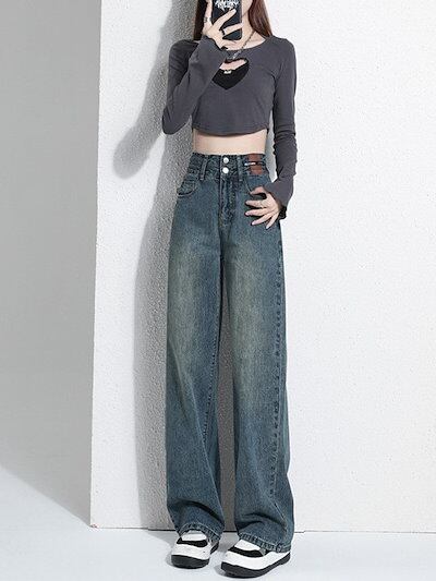 着痩せ 韓国ファッション ボトムス デニムパンツ ゆったり ジーパンレディース ストレッチパンツ 脚長パンツ 微弾ワイドジーンズ 本日25新作 レディース ハイウエストデニム