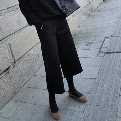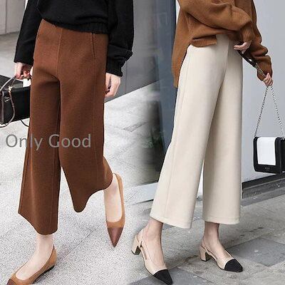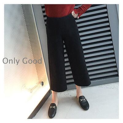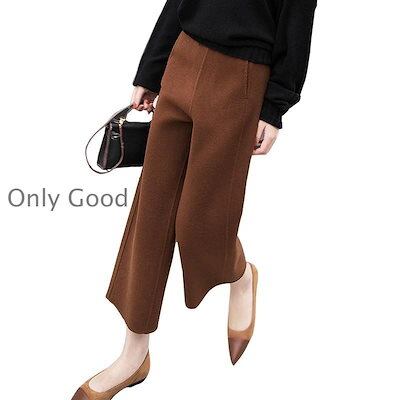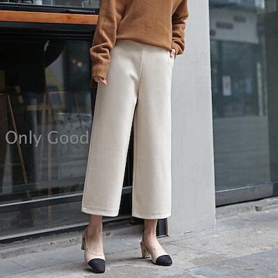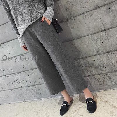ワイドパンツ レディース 秋冬 九分丈パンツ ラシャズボン ストレートズボン 黒 無地 厚手 ゆったり 大きいサイズ 30代40代50代 カジュアル ボトムス 着痩せ