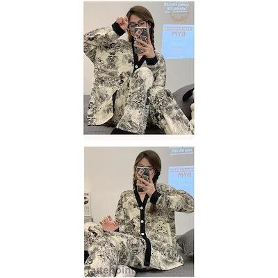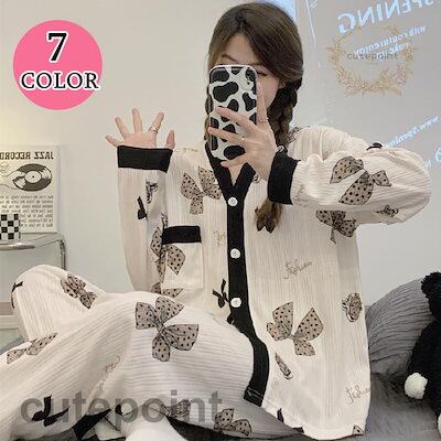 【急速出荷】パジャマ ルームウェア レディース 秋 長袖パジャマ 綿100% ルームウェア 可愛い ロングパンツ 上下セット 総柄 女性 部屋着 寝間着 ゆったり