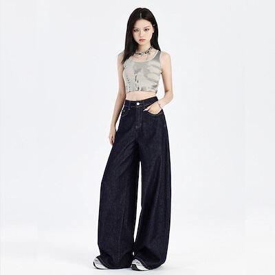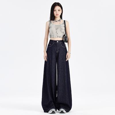 デニムかっこいいスラックスパンツ25 デニムパンツ おしゃれ パンツ レディース 垂れ感 ワイドパンツ アメリカンレトロ ハイウエストでゆったり 見えやせ カジュアルパンツ
