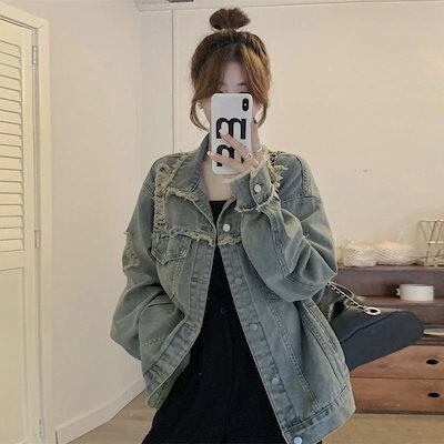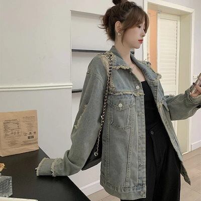 コーデに役立つデニムジャケットファッション レトロ ゆったり カジュアル デニムコートレディース デザインデニムジャケット トップスファッション