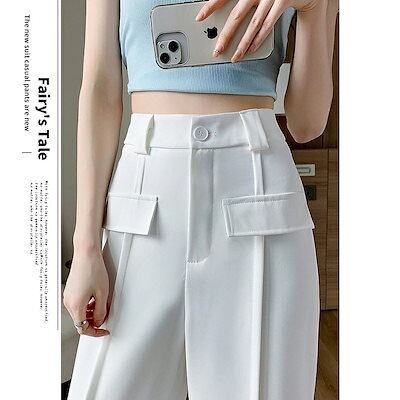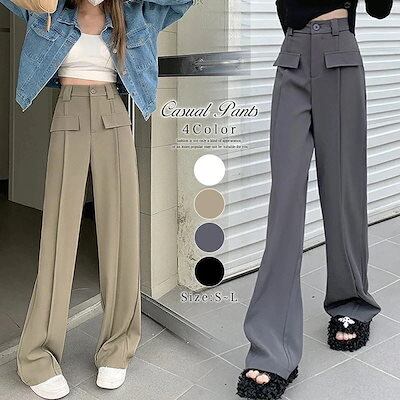 ワイドパンツ センタープレススラックスパンツ ハイウエストパンツ ハイウエスト ボトムス レディース パンツ ズボン スラックス センタープレス ストレート ロング ゆったり