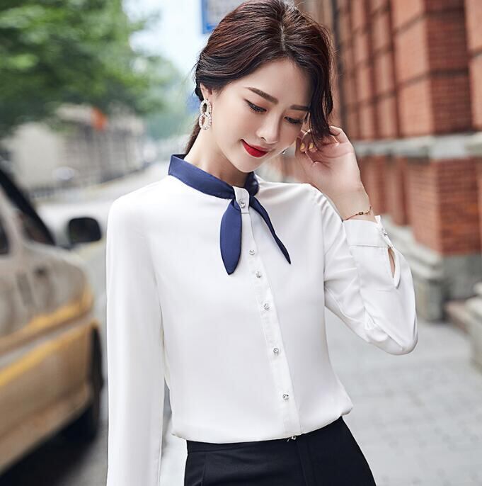秋新しい レディース シャツ ブラウス トップス 長袖 お洒落 通勤卒業式ビジネスシャツ★S-4X