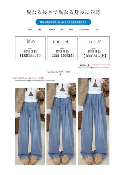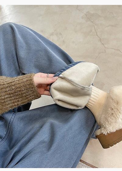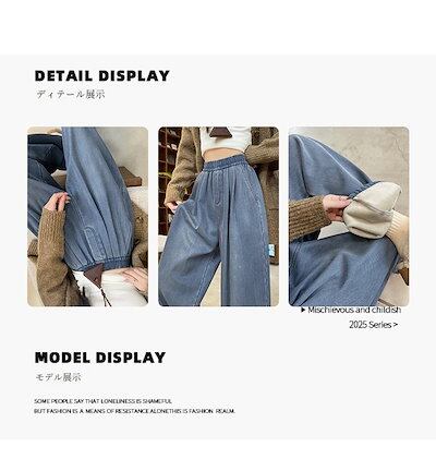 秋冬新品 テンセル 柔らかい 裏起毛 防寒防風 デニム パンツ 楽ちん ゴム デニムパンツ ワイドパンツ レディース 大きいサイズ ゆったり ストレートパンツ ボリューム ロングパンツ