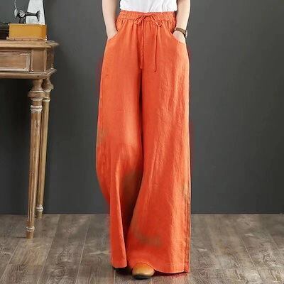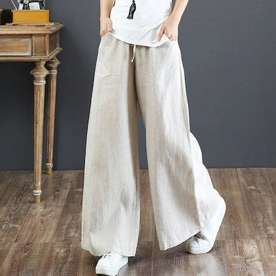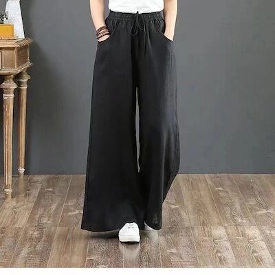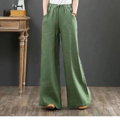 2026 秋 ワイドパンツ 綿麻 体型カバー 薄手 ゆったり ロングパンツ ズボン レディースファッション